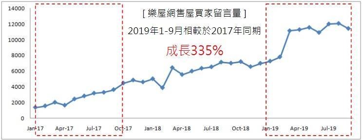 樂屋自2014年起刊登收費至今,網站成效逐年翻倍,更是從2017年起,投入大量的人力與工作效能致力於網站核心流程與服務效能的快速優化;同時在對外的廣告策略上,也一併調整為效益轉換優先為目標,分區分眾的投遞模式大幅提升了買家預約轉換率與樂屋的平台知名度。故2019年網站成績大幅躍昇,1-9月平均每月買家成效,相較於2017年同期成長335%,樂屋相信只要持續優化網站介面與流程,促使買賣雙方更容易找到彼此,就能帶給刊登會員更好的效益。