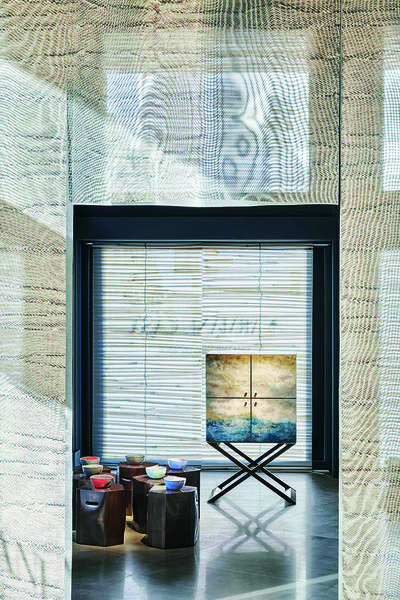 GIORGIO ARMANI(亞曼尼)所延伸的ARMANI/CASA,將實用主義譜寫成詩歌,認為傢具就像是微小的建築,主張極簡主義的線條,透過精心配置的材質、厚度的優雅漸變,彰顯加工與裝飾的細節,像是催眠人們靜下心欣賞每個細節!例如,Club 酒吧櫃採用黑色秸稈鑲嵌和天然緞面黃銅材質,櫃面如藍色海浪瞬間凍結的畫面,感覺時間在這一刻靜止了。
