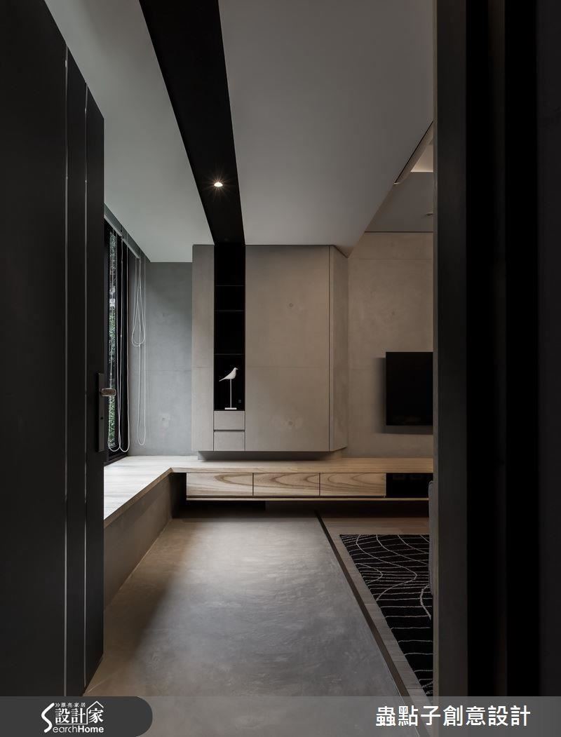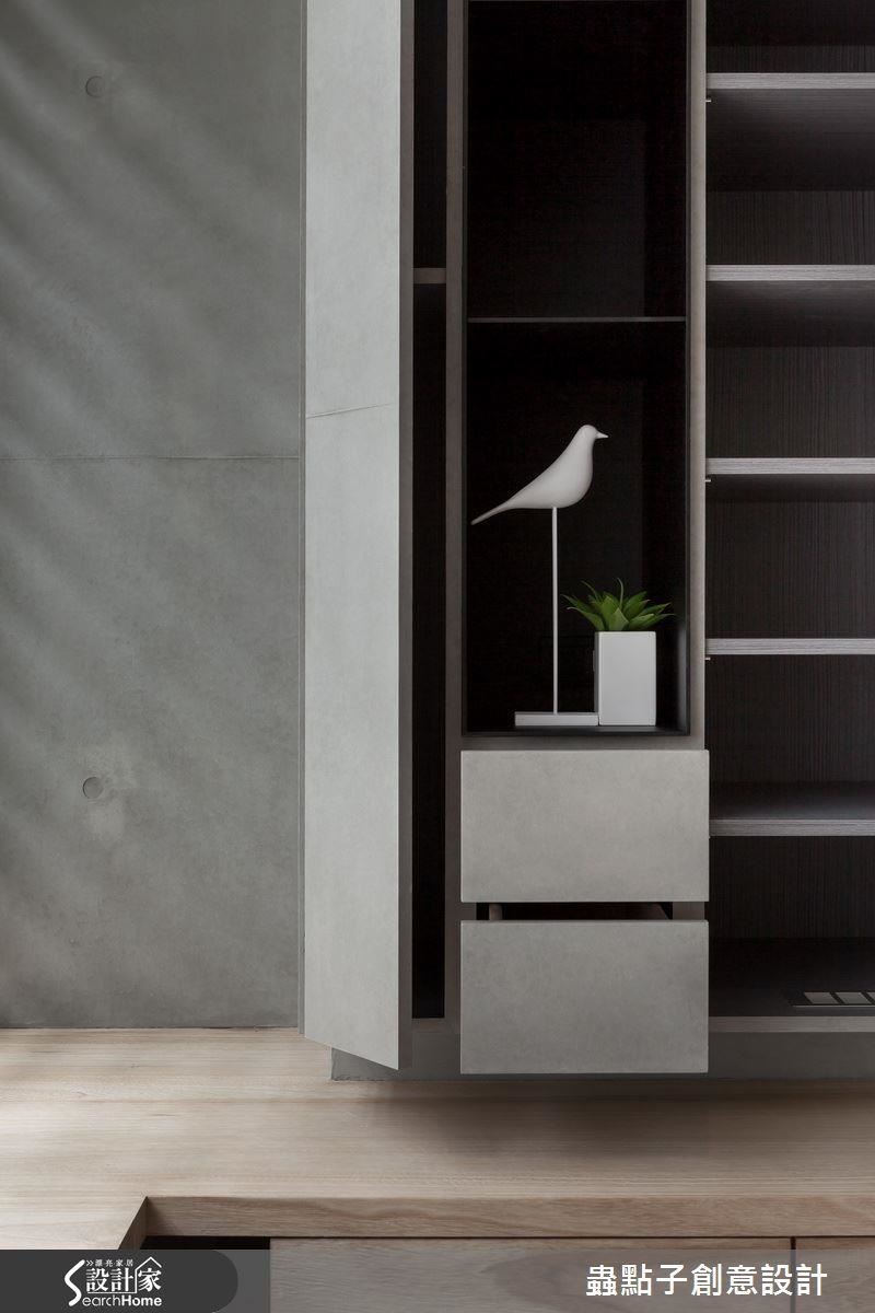屋主是位單身男性,喜歡偏冷但不失自然感的空間內裝,因此整個屋子都以舒服的暖灰色定調,局部穿插木色維持舒服的溫度,包括從客廳一路延伸到餐廚區的牆面仿清水模塗裝、玄關地坪的水泥粉光等等,帶出有型有款的性格魅力,此外橫亙於玄關上方的黑色燈溝,有別於常見的照明方式,除了巧妙截斷下壓的天花板層次,還繼續向下彎折成為別致的格櫃端景,燈光美、氣氛佳,這讓回家的心情瞬間變得輕快,就像進了專屬的私人俱樂部。