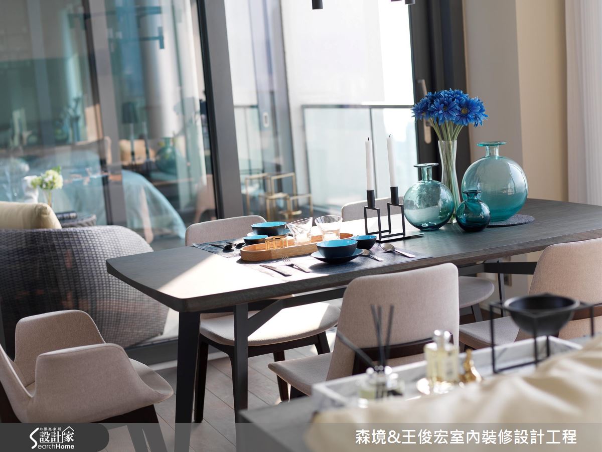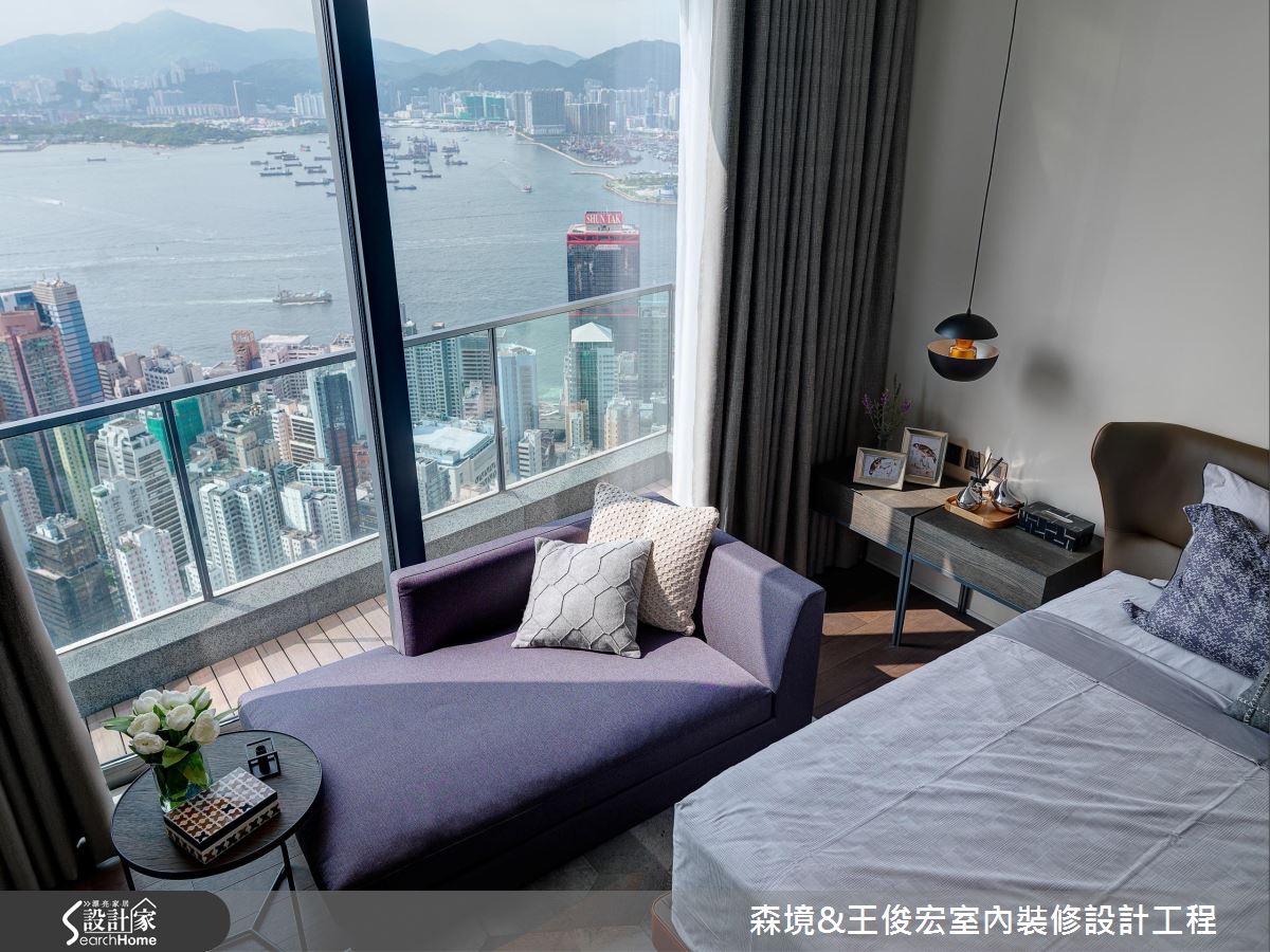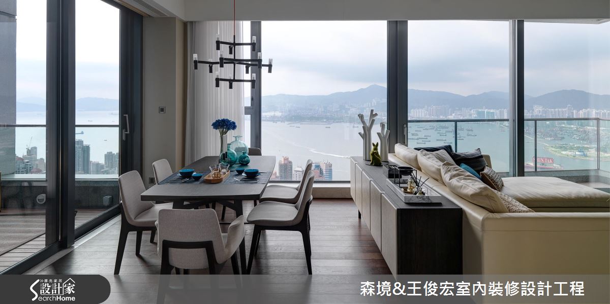 森境&王俊宏室內設計團隊,這次以究極現代美學,打造擁有絕佳海灣景觀的都會宅。在王俊宏設計師的引領下,延續一直以來的「減法設計」概念,透過最低限度的格局變動,打開餐廚、客廳區屏障;善用低檯度傢具結合長形格局原有的穿透玻璃隔間,讓空間呈縱軸延伸,更顯開闊。開放而穿透的格局,讓人置身公共空間,就能盡覽一百八十度海景。身處高樓層,俯瞰港灣頻繁進出的船隻,直至夜幕低垂,繁星般璀璨的夜景,讓人摒息以待。