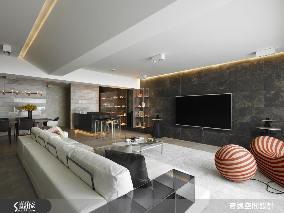 有著 30 年歷史的 44 坪居家,有著樓高過低、樑柱橫亙等老屋常見問題,設計師重新佈局公領域動線,為屋主一家打造宛如百坪豪宅的時尚氣勢。
