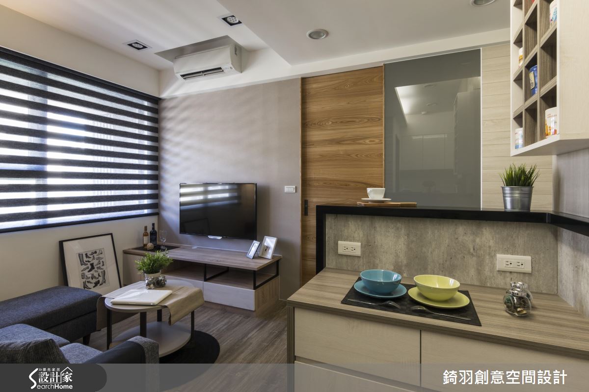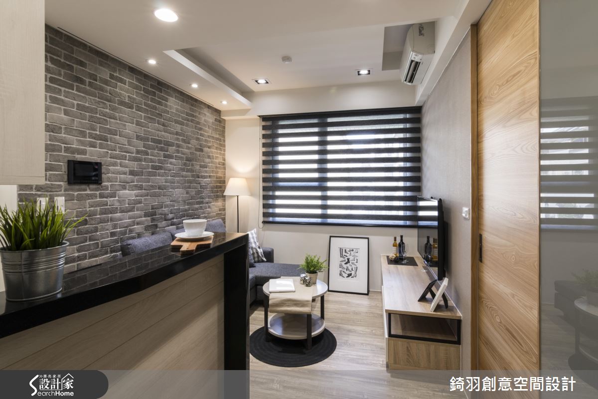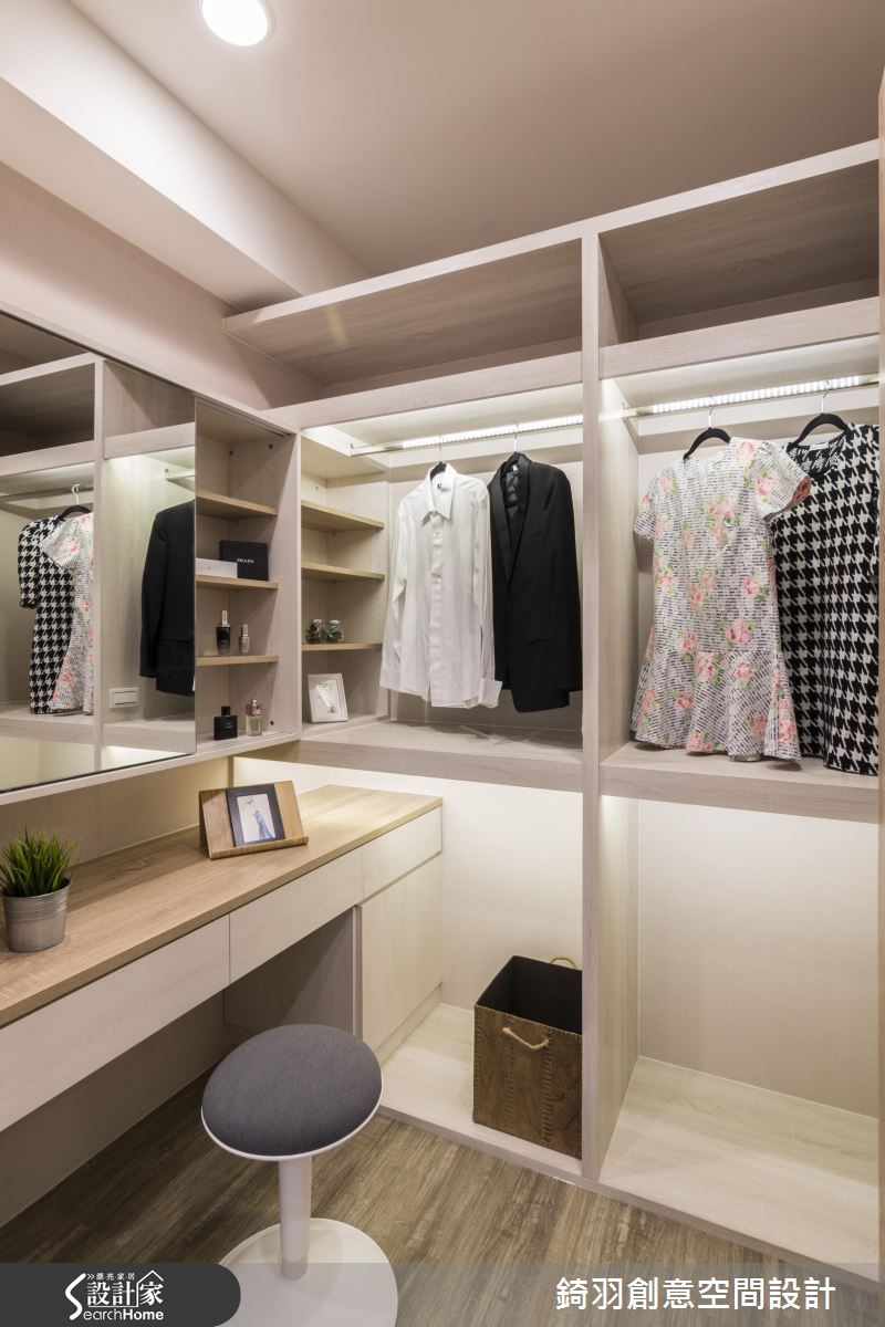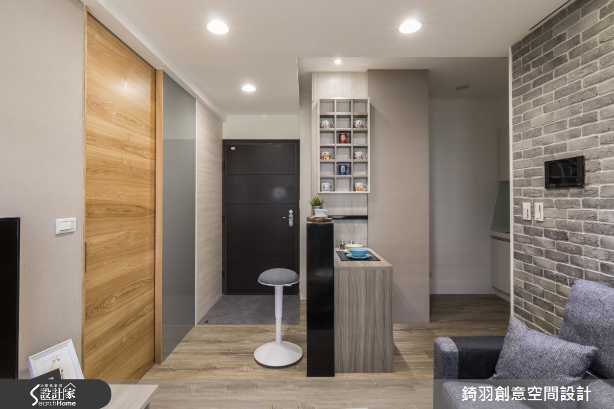 走進室內,客廳背牆採用灰色文化石作為質樸端景,耐磨木地板則加入了溫和的自然木色調,為了使空間更顯放大,公共領域採用開放式設計,取代實體隔間的狹迫感,設計師也利用不同的門片材質表現,自然劃分出空間歸屬,營造豐富的視覺變化。至於收納安排上,沿著玄關向內延伸至餐廚區,以櫃體做出妥善的收納規劃,吧檯上方並設置杯具的收納格,兼具展示收藏功能。主臥室藉由整併格局,額外開拓出屬於更衣和梳妝檯的位置,門片使用通透的玻璃拉門設計,將光度流暢引入室內,同時也讓臥室顯得更加開闊舒適。