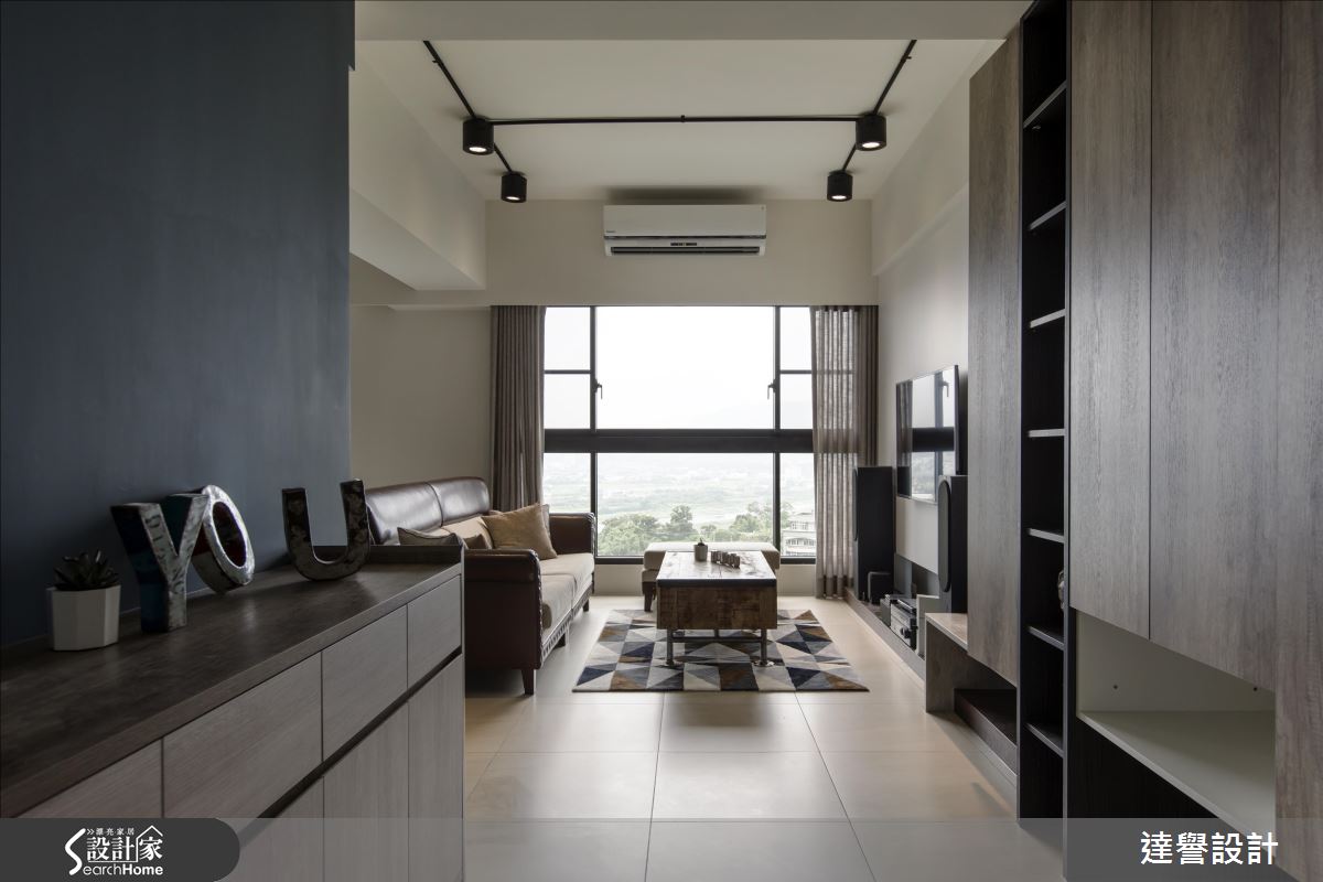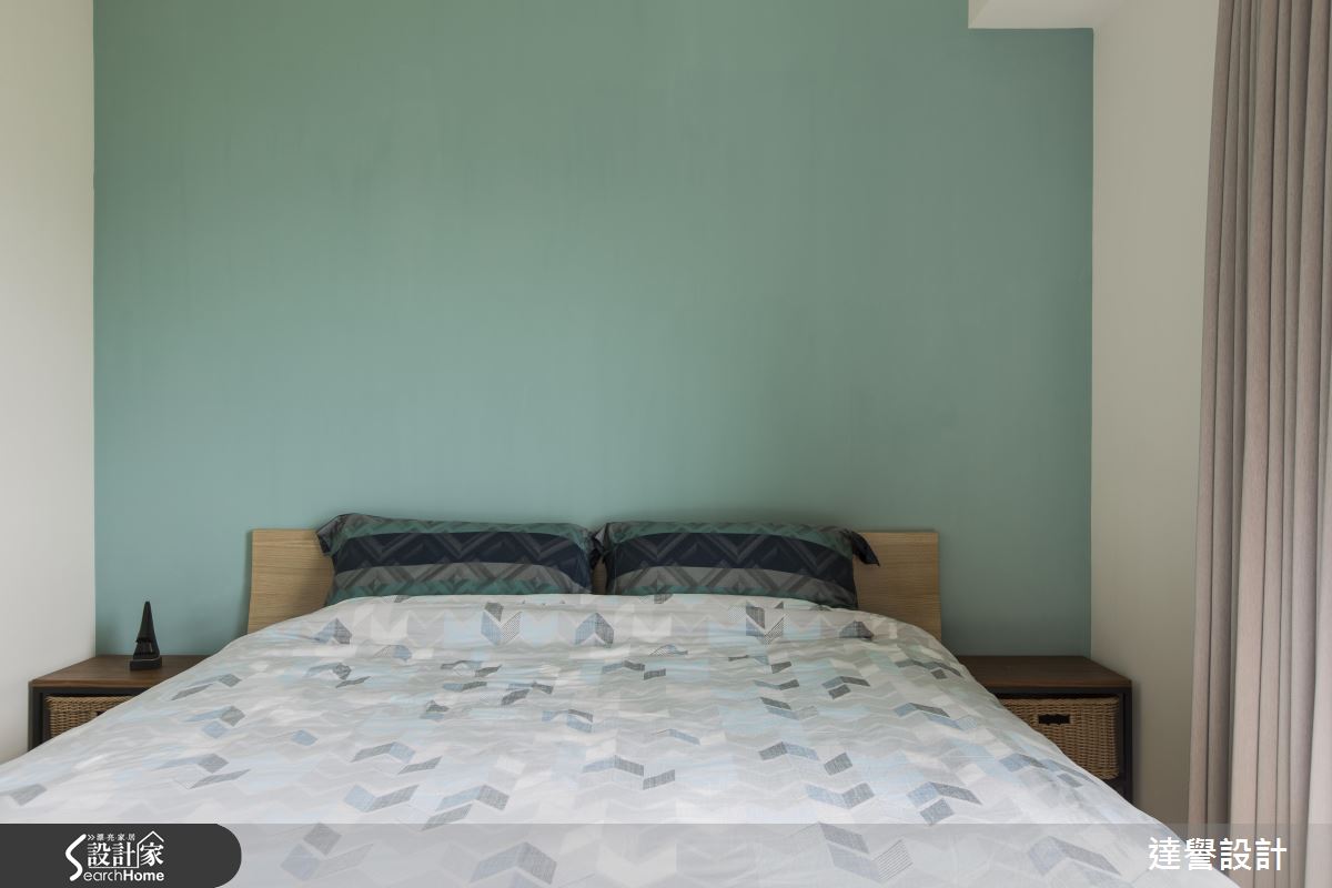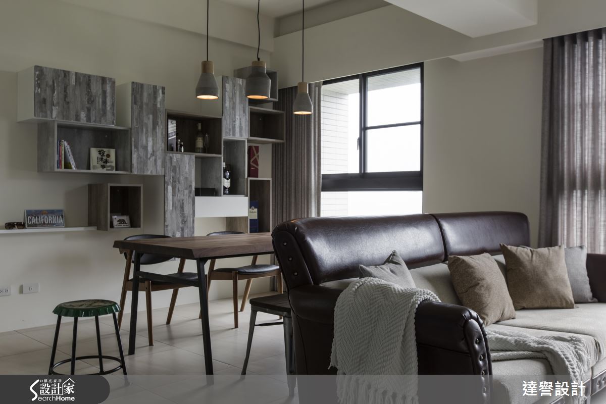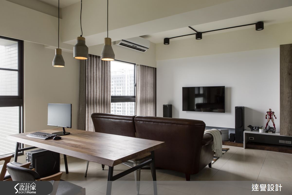 公領域在去除隔間後,呈現開放格局視野,搭配窗外光線進駐,讓整體變得明亮舒適,電視牆面則適度留白,運用板材做出線性切割,彰顯量體的勻稱比例美感,再搭襯具雅痞風韻的深色皮沙發,帶出具大男孩個性的爵士風格;客廳後方的書桌兼餐桌功能,天花懸吊灰色水泥吊燈,呼應背景牆的櫃體木紋肌理,藉由暈柔微光表現,醞釀生活暖度,一旁則導引優美窗景,讓人可享受舒適的閱讀時光;寢臥為呼應窗外美景,於床頭鋪陳優雅湖水綠作為空間主色,櫃體則鋪述天然的木紋質地,強調寧靜舒適的休憩氛圍!