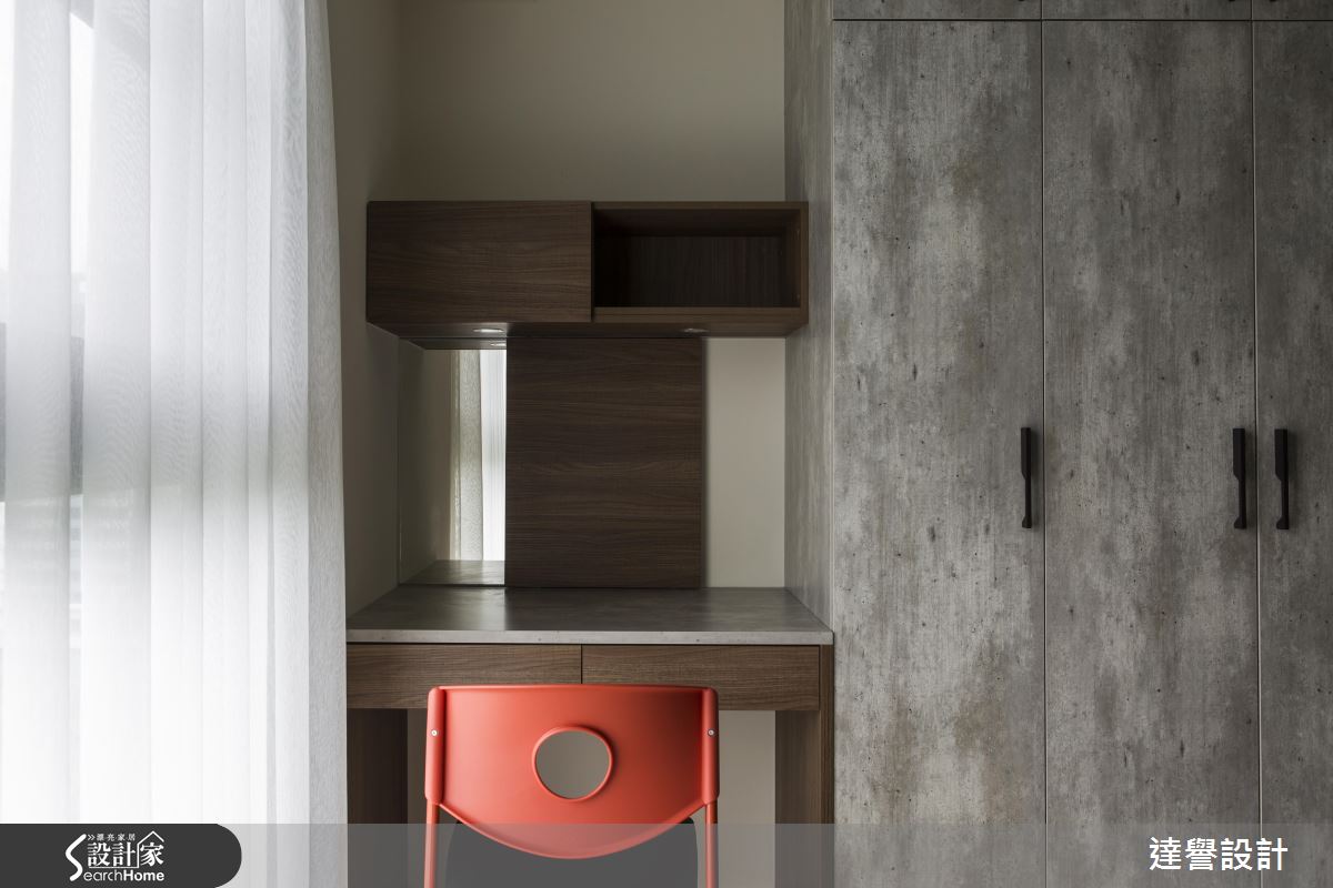 臥房規劃開放式梳妝檯,並於細節處暗藏巧思,預留橫向推拉門遮蔽鏡面,除了梳妝之外,平時亦可當作書桌使用,實現多元生活機能!