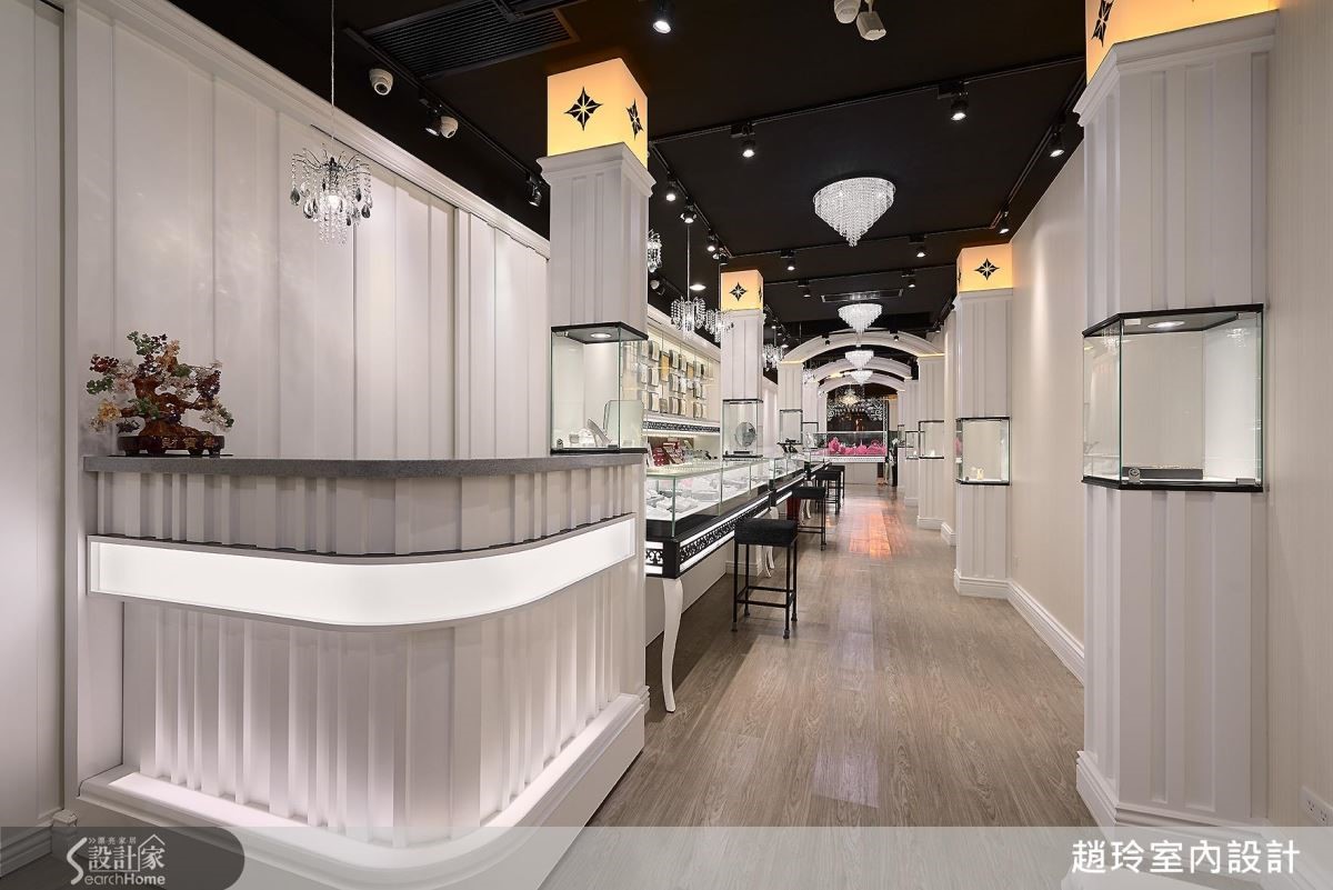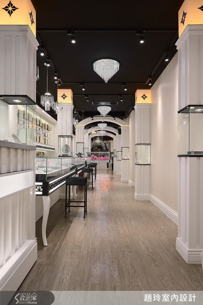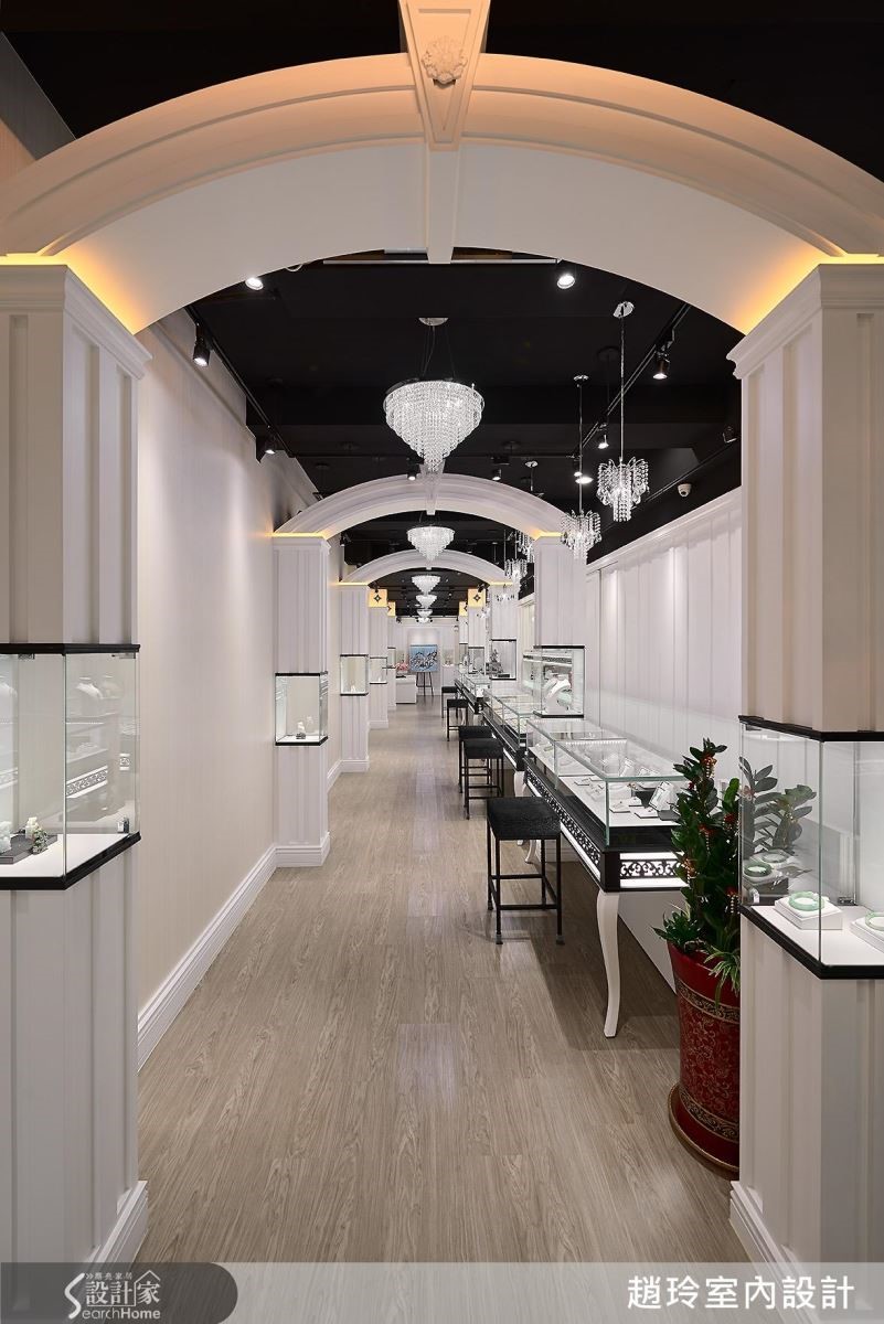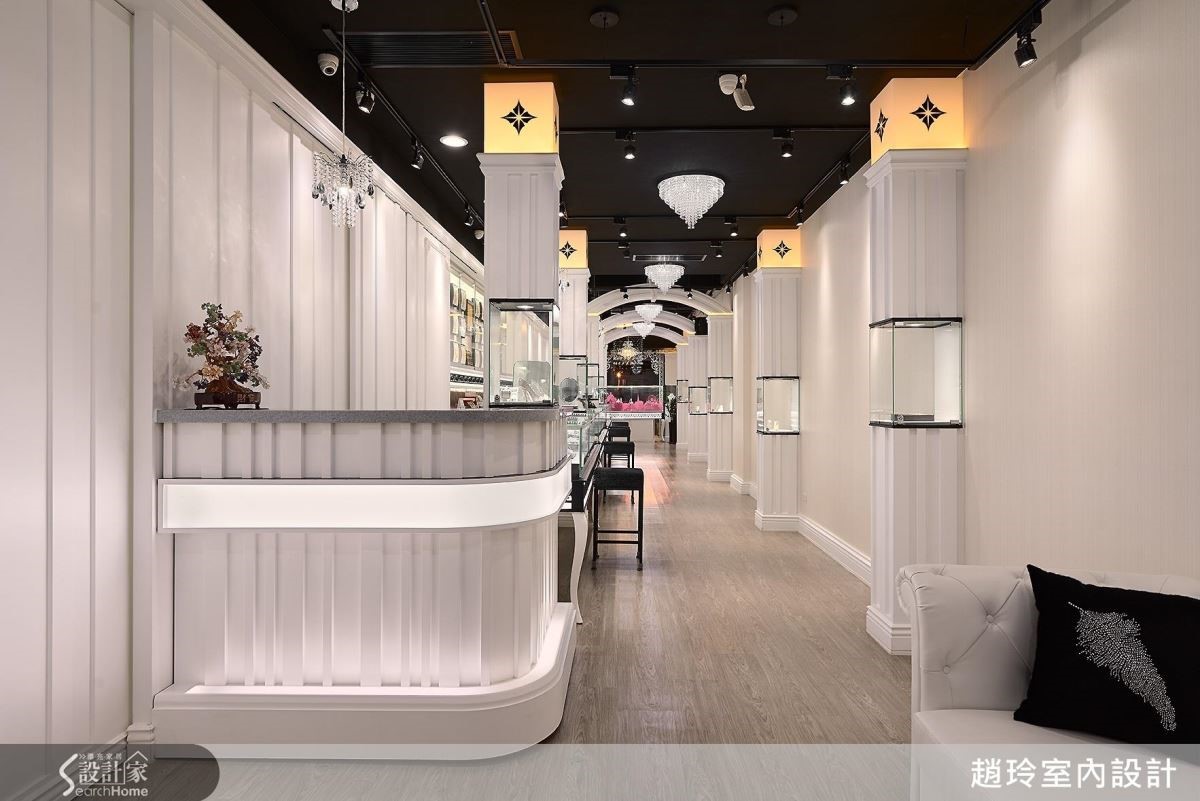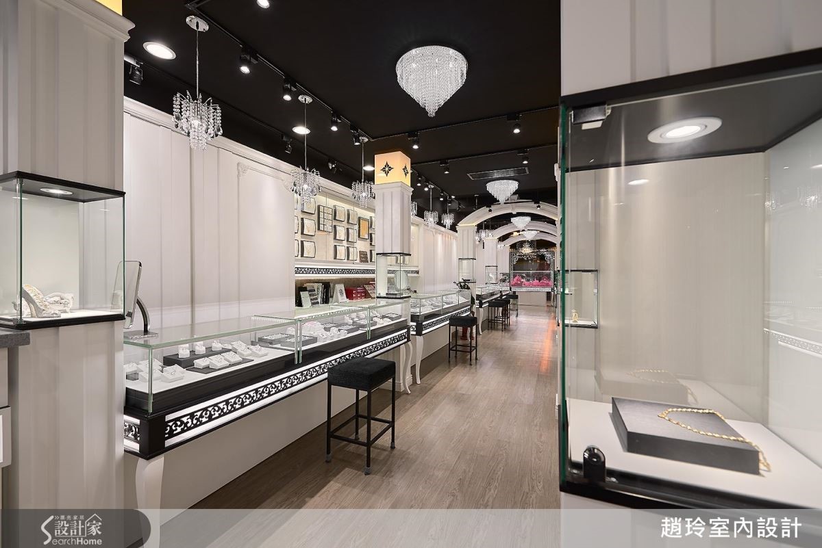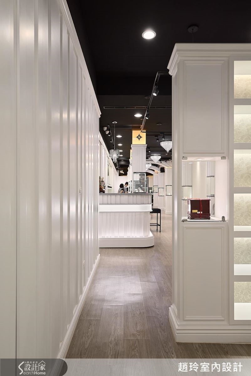 再也沒有比細膩優雅新古典風格更能襯托珠寶的精緻璀璨,更能滿足客戶期待浪漫與夢幻成真的最佳舞台。對極為擅長展現新古典之美的趙玲室內設計,將這間原是自助餐廳的老舊商業空間,完美詮釋為邁進童話世界的華麗入口,層層遞進的廊道設計,將長型屋原本的缺點變成優勢,不管在設計意象或實際場景上,都和珠寶隱含的婚禮意涵十分契合。
