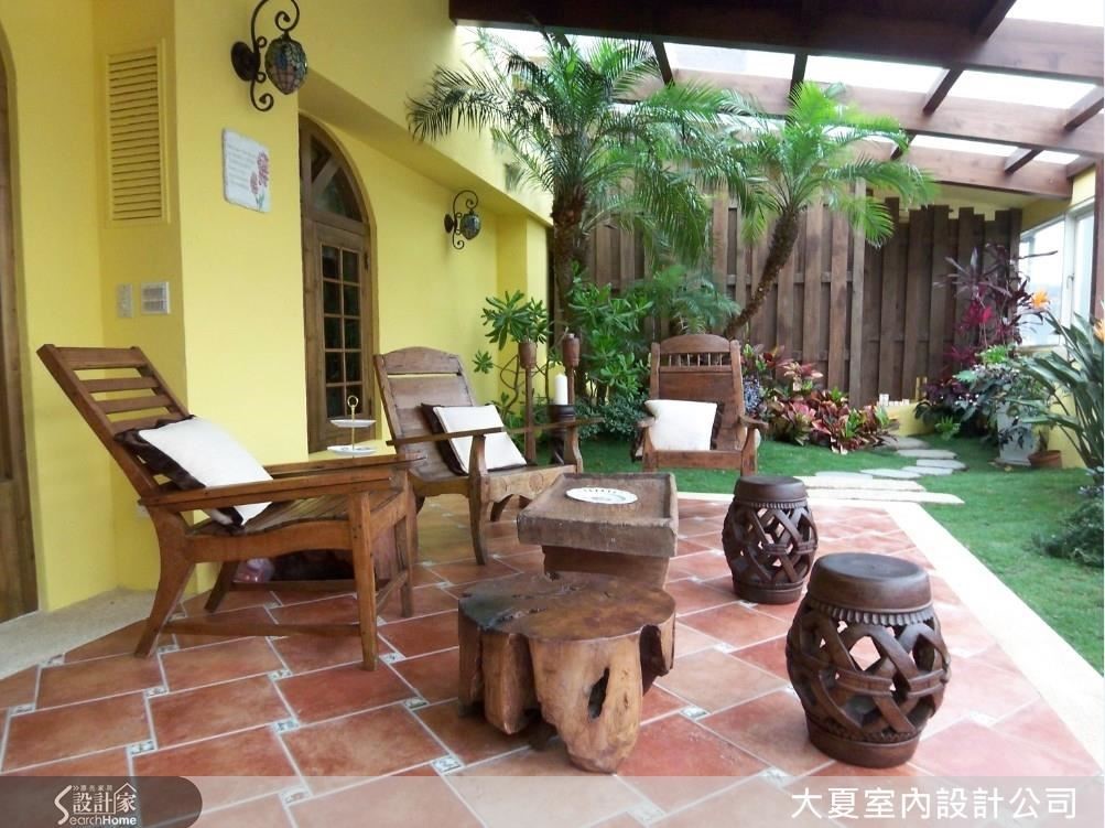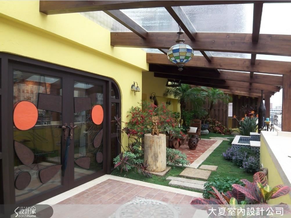 「客廳如果夠深,就把陽台往內推吧!」大夏設計認為鄉村風的美感起始於「停滯的幸福時光」、「抒壓的生活享受」,要釋放身心,就在露台上盡情的擁抱陽光、空氣、花、泥土、清風和水吧!藉由生長的花草樹木打造自己的城市花園,搭配讓人放鬆的峇里島式家具,透過玻璃頂蓋看白雲、看星空,在五感的體驗中將自己放空,感受此刻的幸福。