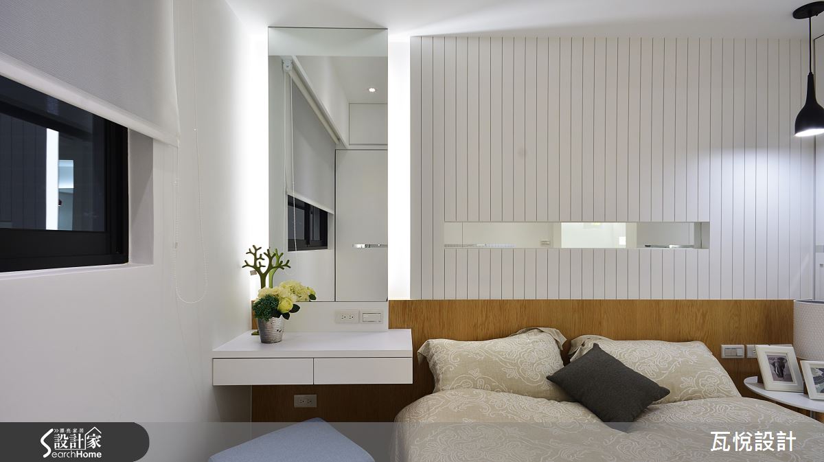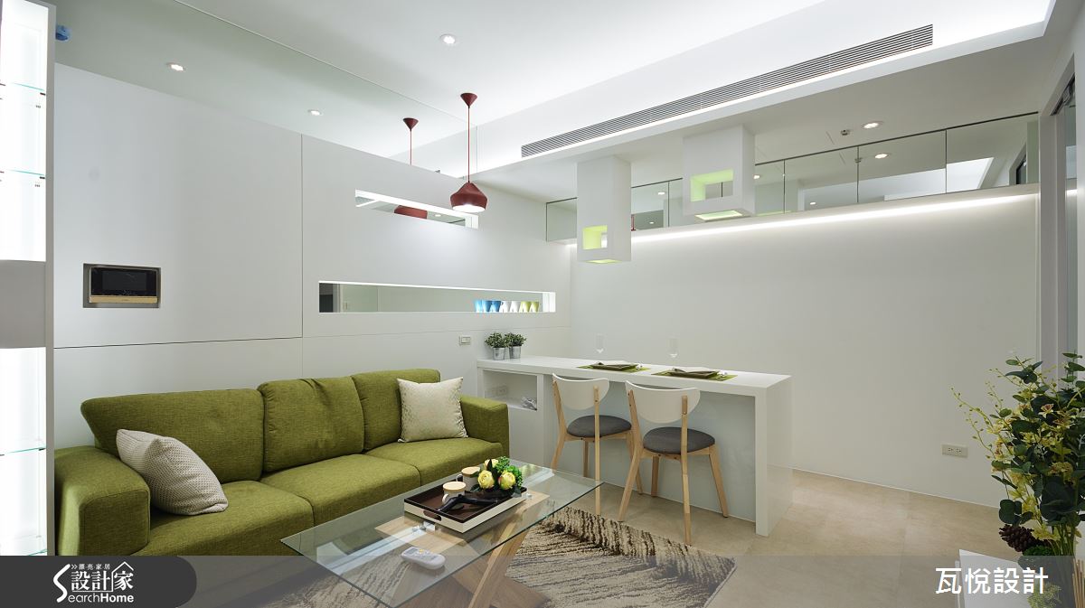 走進為新婚生活所規劃的 14 坪空間,公領域結合客廳和餐廚機能,以純淨白色系為色彩基礎,搭配鏡面映射效果,帶來更寬敞、明亮的視覺感受,適度地加上跳色軟件點綴,讓生活更具活潑感。天花處則運用間接照明,利用柔和自然的燈光提升空間高度,帶來更加輕盈、淨透的生活氛圍,另外,設計師也運用吊隱式冷氣取代壁掛式冷氣,將機台隱形,有效收整空間的清爽視感。主臥室延續淨白色系,並賦予充裕的收納效能,床頭背板加入溫潤的木質元素,洋溢自然舒適感;次臥結合閱讀機能,則可作為客房或是未來的小孩房,保留彈性的使用空間。