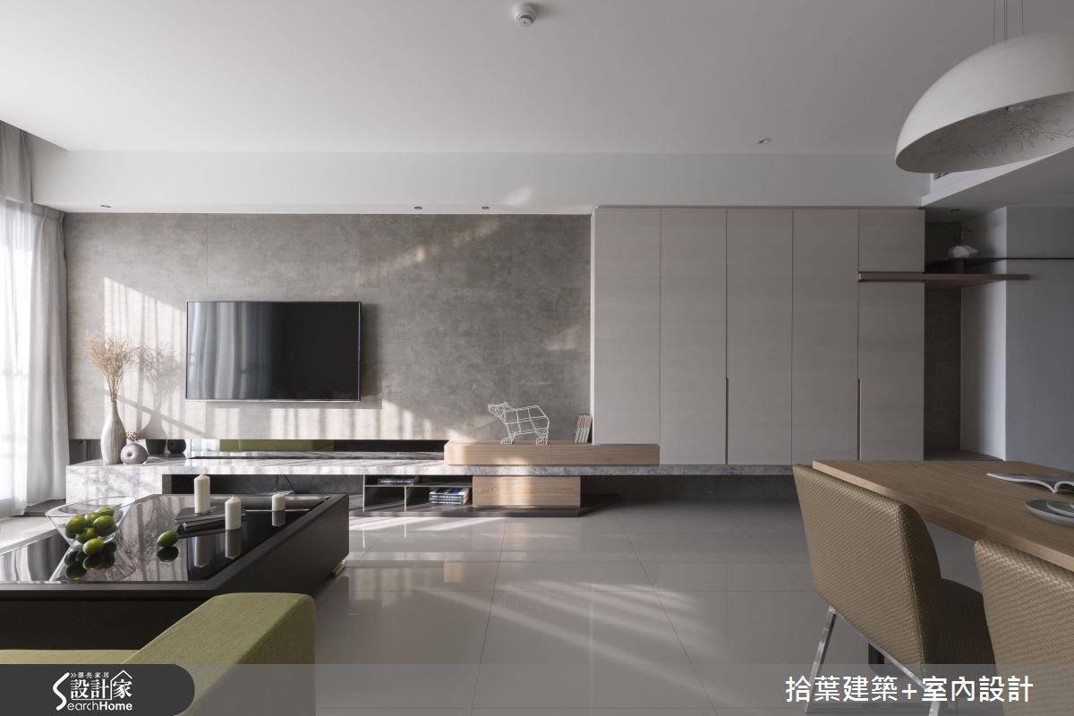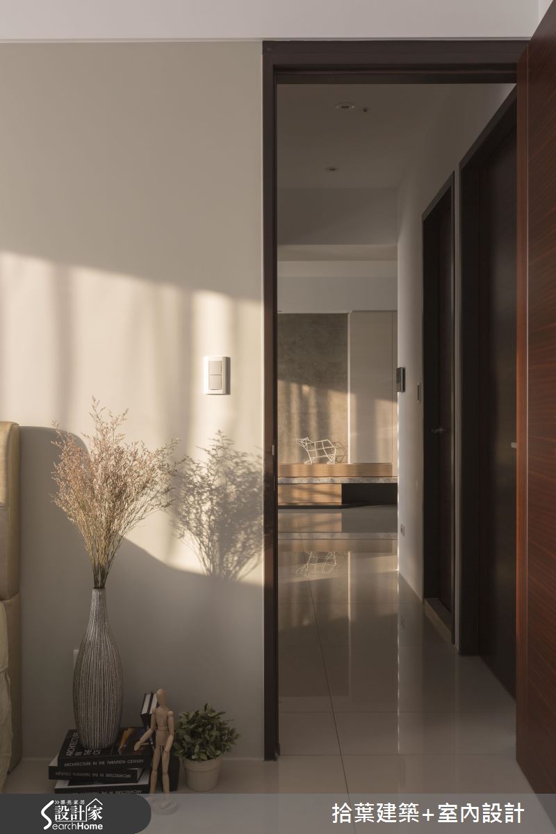 25坪規劃了三房二廳格局,順著光的動線,一路劃分公領域和私領域。客廳與餐廳相鄰,重新定義家人的用餐領域,更能望向客廳的日光好景。設計師在拿捏坪數與收納之間的平衡點,為不顯空間侷促,選擇將收納櫃體與牆面結合,讓櫃體具有實用的收納機能,同時整合公領域和私領域的櫃體設計,顯得空間彼此串聯又顯得整體,既滿足家人的實用需求,更呈現空間的現代簡約風格。