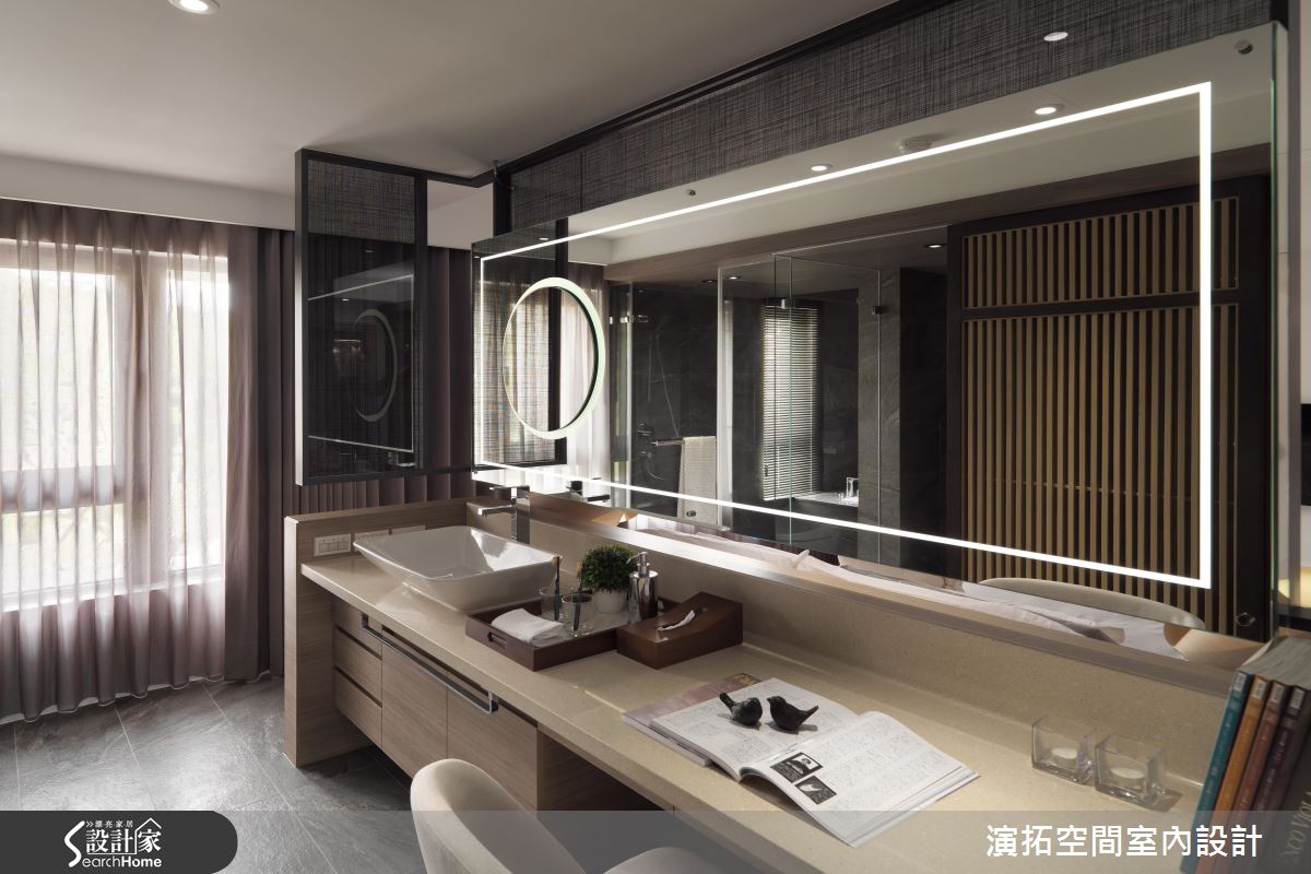 半開放式的衛浴空間與專屬更衣室,以自然石材與竹子格柵相間,展現出自然舒適的生活氣息,就像真的入住五星級飯店般;而大面長型的鏡子與梳妝台,讓人也忍不住喊聲「Ciao」啊!