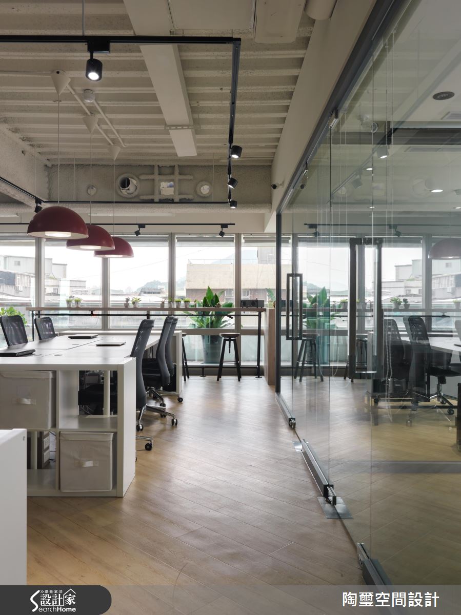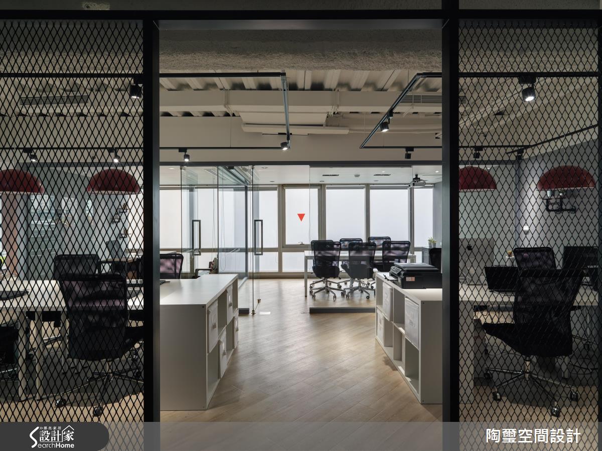 玄關使用進口壁紙鋪陳牆面,帶出 Loft 個性印象,傳述對紐約蘇活區創意、藝術風格致敬的意味,並規劃鐵件隔間作出與室內場域區隔,藉由穿透視感強化空間整體尺度;辦公室則給予乾淨線條,並導入開放式設計,透過日光與冷色日光燈的輝映,造就明亮立體的敞闊氛圍,同時注入流暢動線,配置連貫辦公桌有助員工討論互動。一側的大面積灰色立面則採用黑板漆材質,可兼顧吸附磁鐵與留言版功能;靠窗處特別以長吧檯、單椅打造紓壓角落,桌面陳列一整排綠色多肉植物,搭襯美好的窗外景致,讓員工們可在此休息片刻,感受難得的療癒氣氛。主管辦公室、會議室皆使用玻璃透明隔間,選用具厚度的玻璃建材,達成良好的隔音功能,並設置垂降式窗簾,保有空間使用的隱密性!