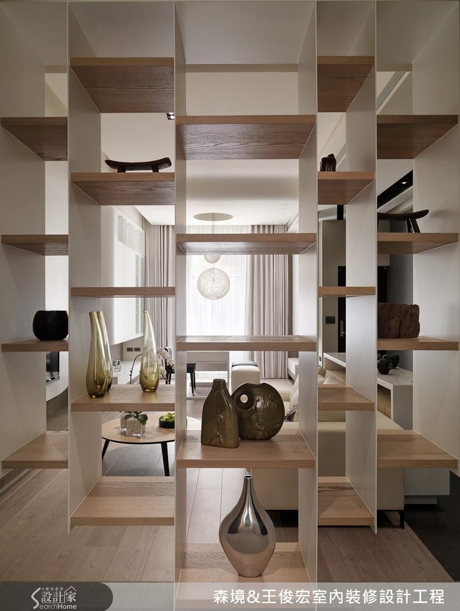 不論商業空間或住宅,善用複合機能取代制式隔間牆,可兼顧隱私與實用性。例如在工作室設計中,用厚實量體區劃洽談區;在私領域的臥房,以造型隔間結合穿衣鏡機能,可以放大空間坪效。另一常用手法,則是採用穿透層架隔間,既可收空間界定之效,也能減輕壓迫感。