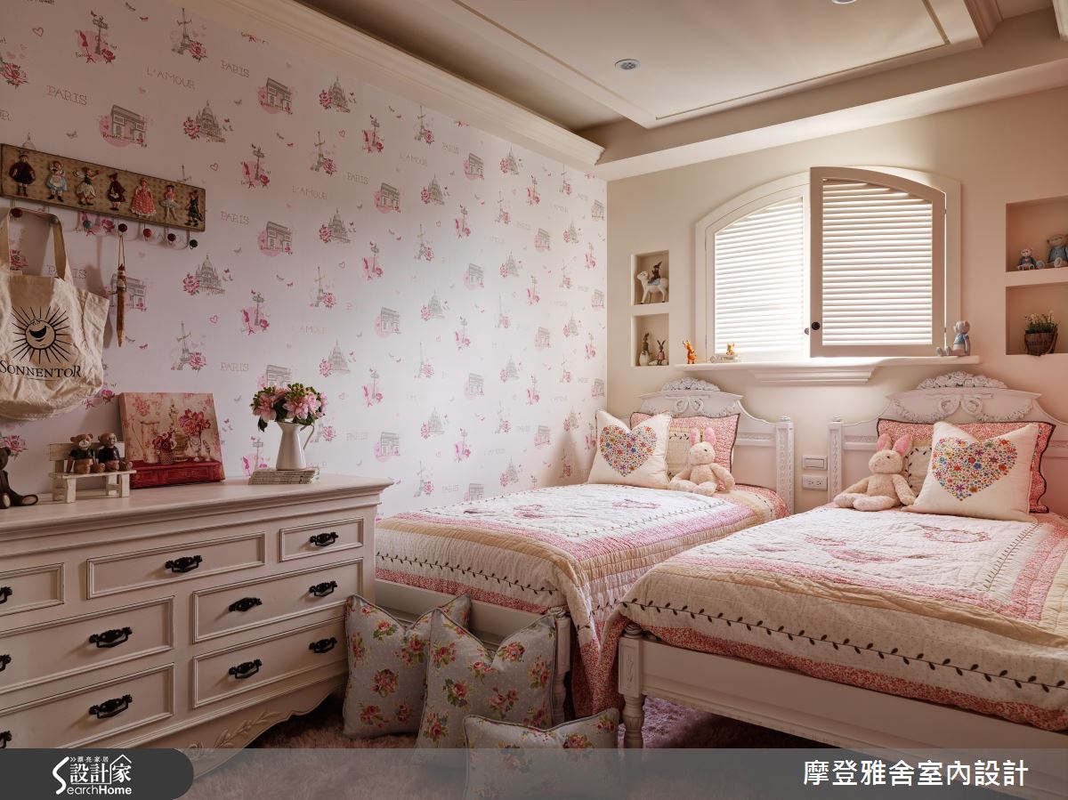 女孩房讓姊妹倆共用一間房,可享有親密的床邊對話,再以花色壁紙帶入春天活潑感,充分表達個人的生活風采!