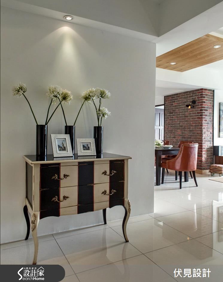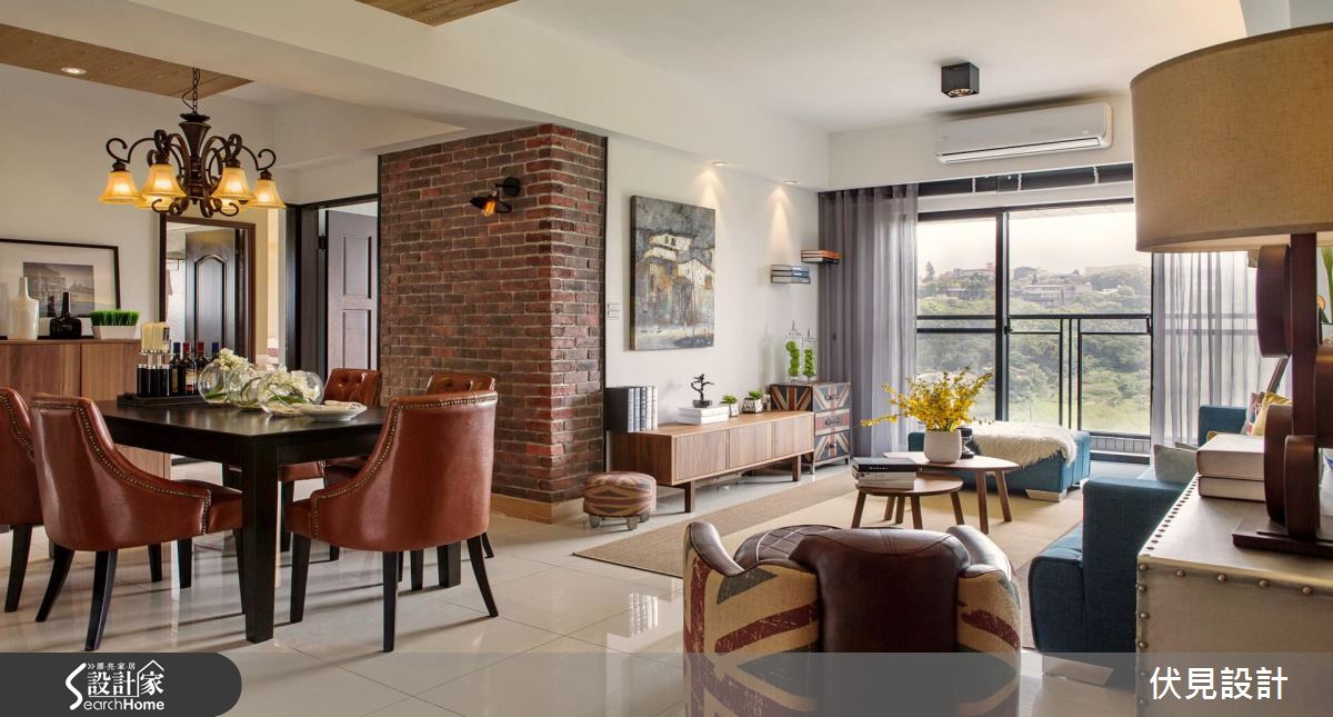 入口處陳設玄關桌,以白牆背景襯出端景的簡約本質,搭配照片、植栽與燈光的點綴,凝造優雅的居家印象;公領域則給予通透明亮的採光條件,藉由開放格局的推演,讓光自由流動於每個角落,且藉由充滿異國風情的軟件鋪排,融入質樸木色與馬卡龍糖果色彩,賦予空間繽紛情境,立面則鋪陳壁紙或以紅磚堆砌,帶出復古結合摩登的豐富層次;餐區採以紅磚牆作為轉折界定,於壁面嵌上一盞壁燈,予人異國街景的美好想像,並陳列細緻的皮質餐椅,與磚牆色調相互呼應,搭上壁燈、餐吊燈的溫柔光照,烘托出視覺的暖意;寢臥於牆面鋪陳暖色壁紙,無形中與窗外綠景對話,並巧妙將上方大樑圓弧收邊,或在牆腰做出線條延伸,讓整體的視覺比例更顯柔和舒適、不壓迫!