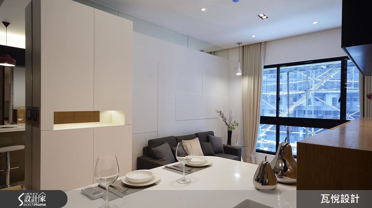 當坪數有限時,「空間放大」便是設計師的首要任務,設計師在 16 坪小宅內巧妙結合純白色彩與鏡面材質,成更為居住者打造寬敞、明亮的生活場域。