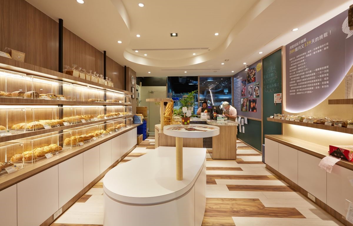 有別於一般的商場空間,需要考量憨兒們的行為模式,加入增加憨兒與人群的接觸,該怎樣去思量空間的調整配置呢?從光線、每個層架的高度,都是針對職能與避免對人體產生傷害而做出的配置,甚至在材質上也是經過仔細考量,使用美耐板,能夠避免塗漆料而產生的刺鼻味道,同時無毒好清潔的特性,對食品與憨兒都能擁有很好的健康保證。