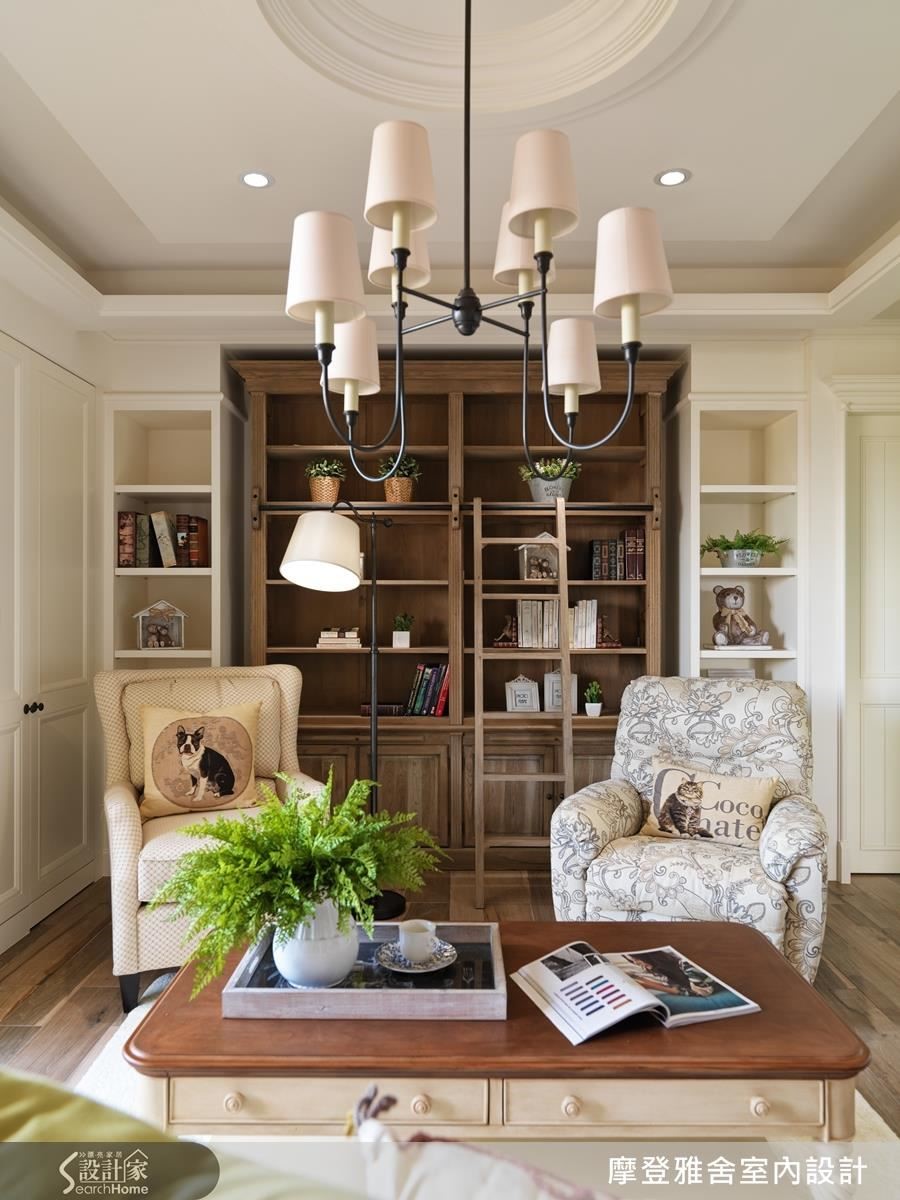 客廳在居家中,是最具有代表性的公共空間,汪忠錠、王思文設計師為強調閱讀與互動空間的屋主,配置了大量藏書的空間以及臥榻,讓家人們可以恣意地或坐或躺,享受悠閒的閱讀時光。