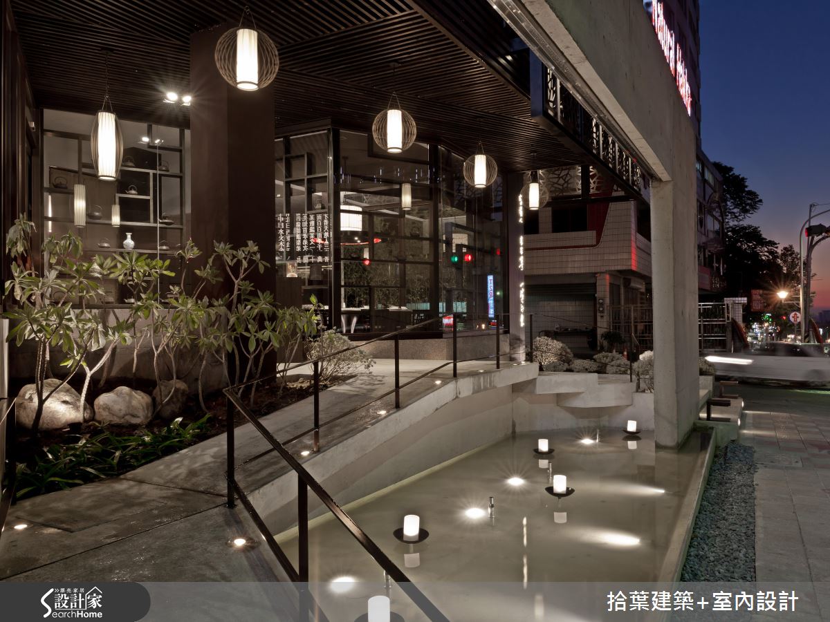設計團隊將原一層樓半的建築外觀進行部分拆除後重塑整體造型,並增建二樓宴會廳,利用灰階清水模與鏤空鐵件創造前衛俐落的建築線條。入口處以水池造景作為迎賓設計,大面積落地窗搭以翠竹等綠意植栽呈現若隱若現的穿透視覺。英文招牌則納入客家文化特有的花布元素,形成傳統與現代融合的饒富旨趣的端景。內部裝潢以儒家中心思想結合現代精神,將文字、燈籠、窗櫺、磚面與圓桌等中式元素鑲嵌在水泥粉光之中,讓東西方激發全新視覺饗宴。