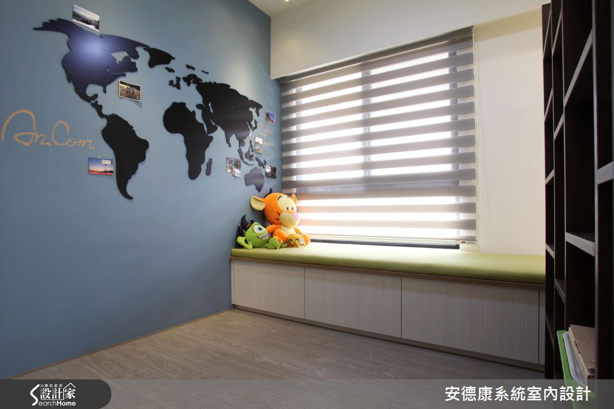 喜愛旅遊的屋主夫妻,訂製了一幅世界地圖,利用照片標記每一次旅行的回憶,並使用海藍色磁性黑板漆,與人適切的休閒氛圍。