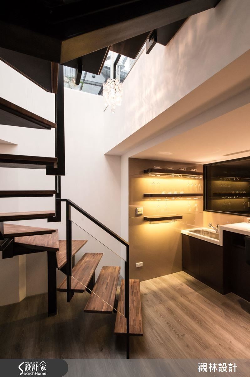 經常接受老屋翻修委託的觀林空間設計黃傳林設計師與設計團隊,具備深厚的設計與工程底子,透過合理的空間格局、動線安排,將採光、通風、管線配置等基本問題一併解決,其中最讓人津津樂道的,就是利用通往地下室的穿透H型鋼螺旋梯,串聯動線,同時引進光線。原本陰暗的地下室,利用玻璃隔間,引進採光,減輕壓迫感。