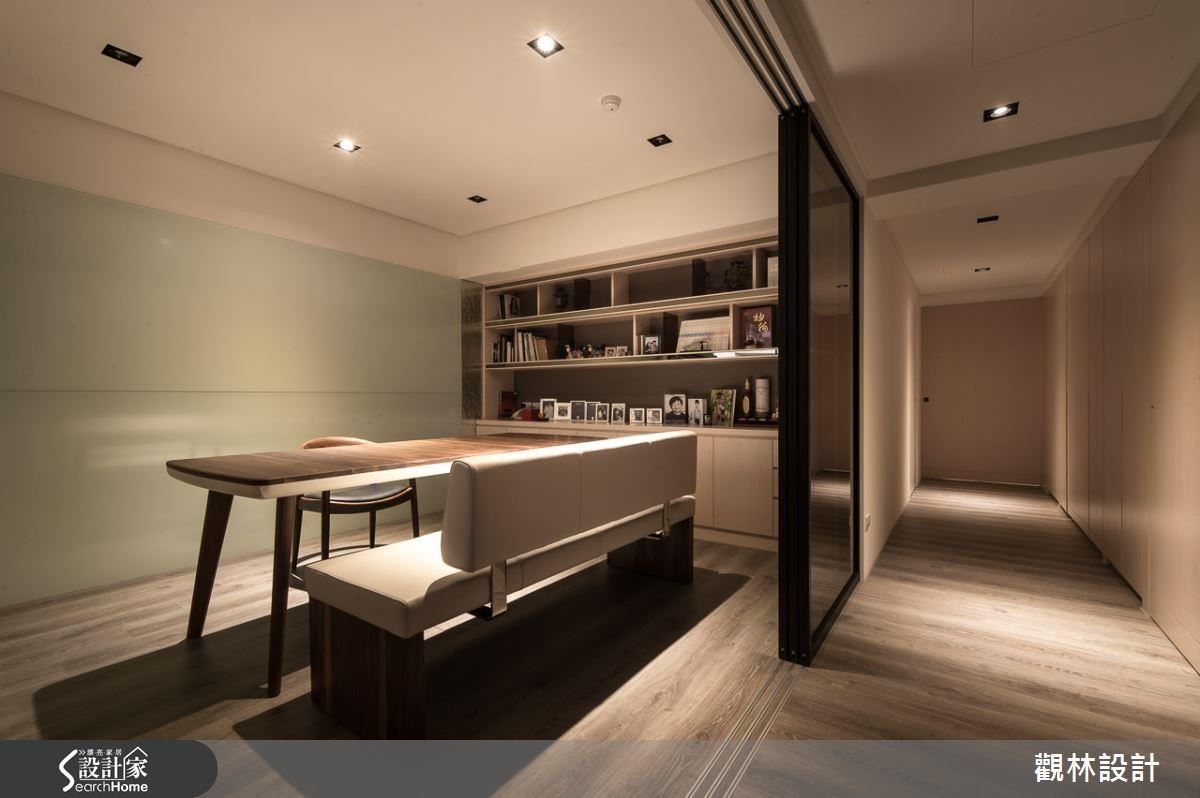 善用複合式設計,在客廳以架高和室,滿足閱讀、休憩、收納、寢居等機能;地下室公共區,則規劃小型吧檯、家庭劇院、卡拉 OK 及獨立書房,讓家人無須出門,就滿足娛樂、休閒需求。隱藏式的美型收納,則讓家中眾多物品,都能妥為收藏,隨時保持整潔俐落。
