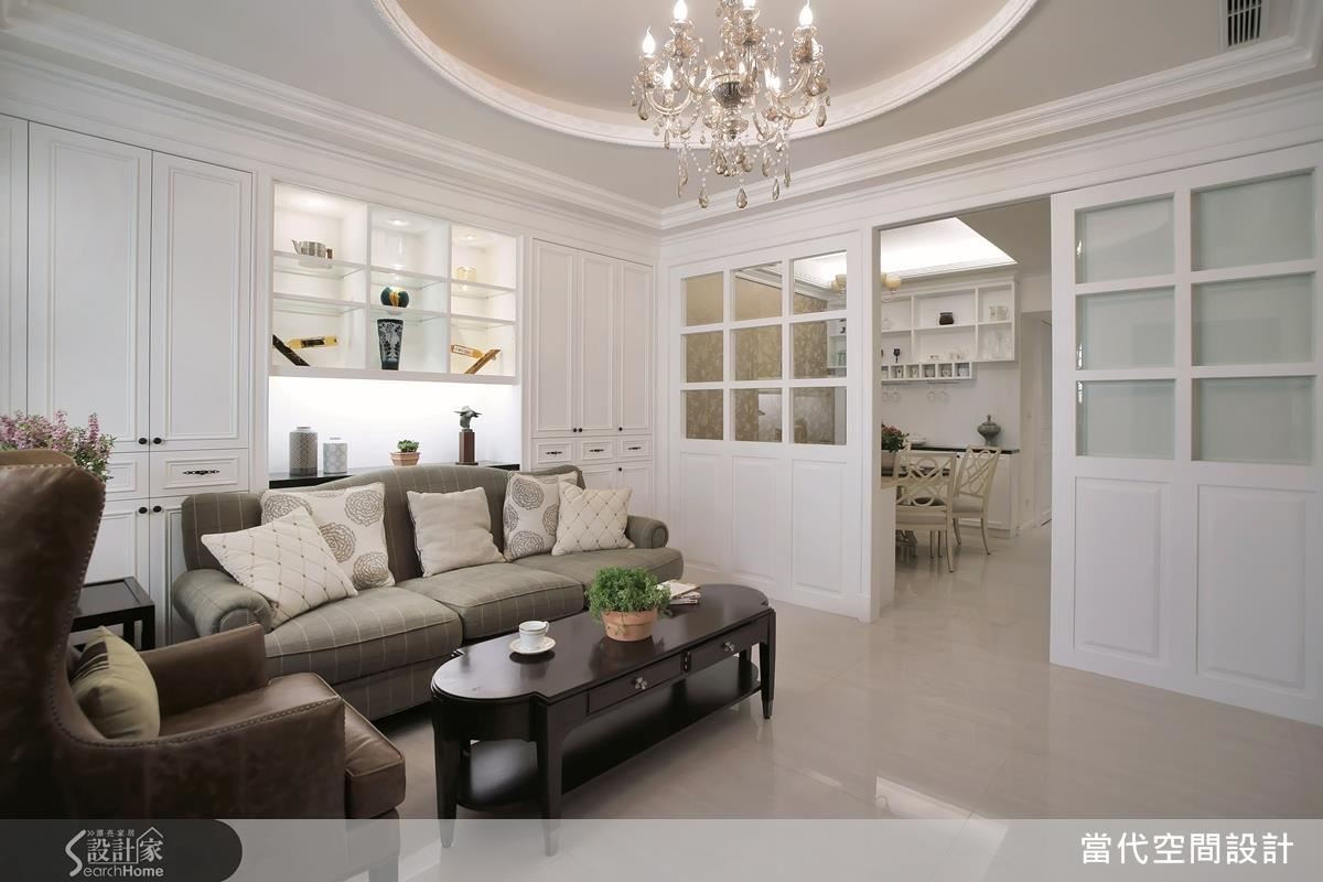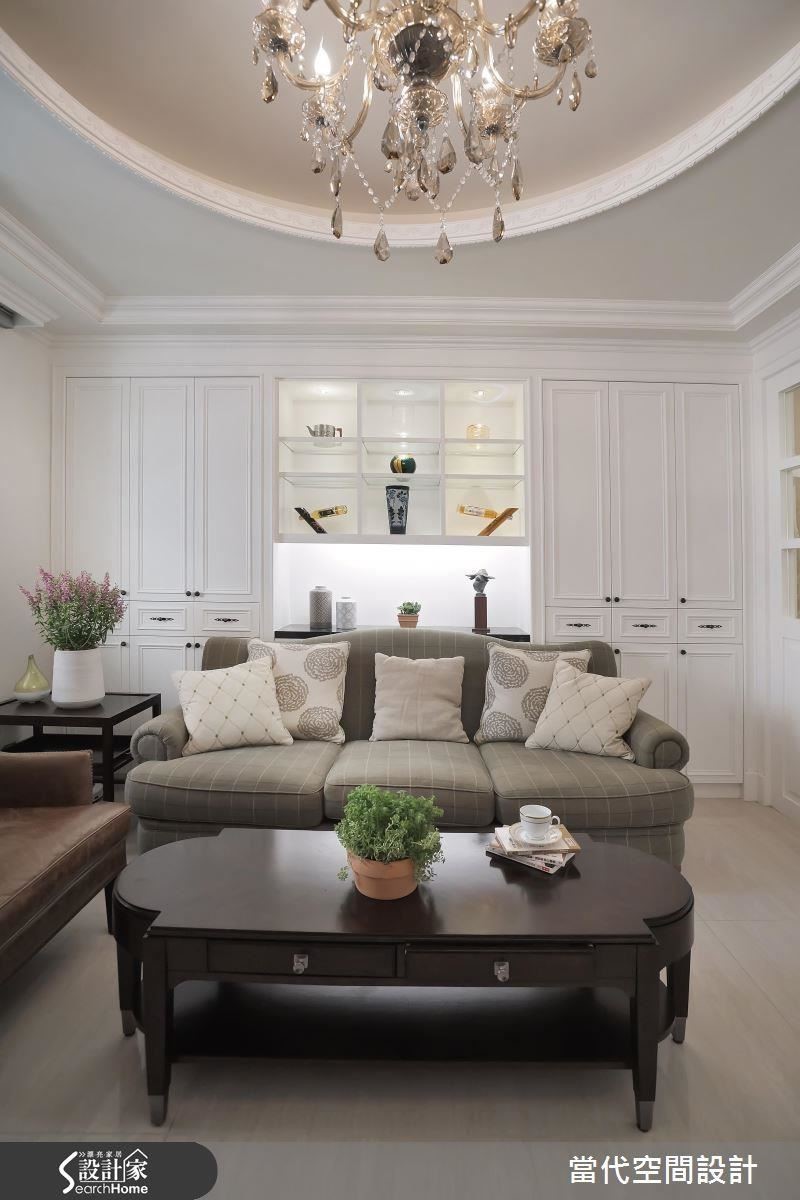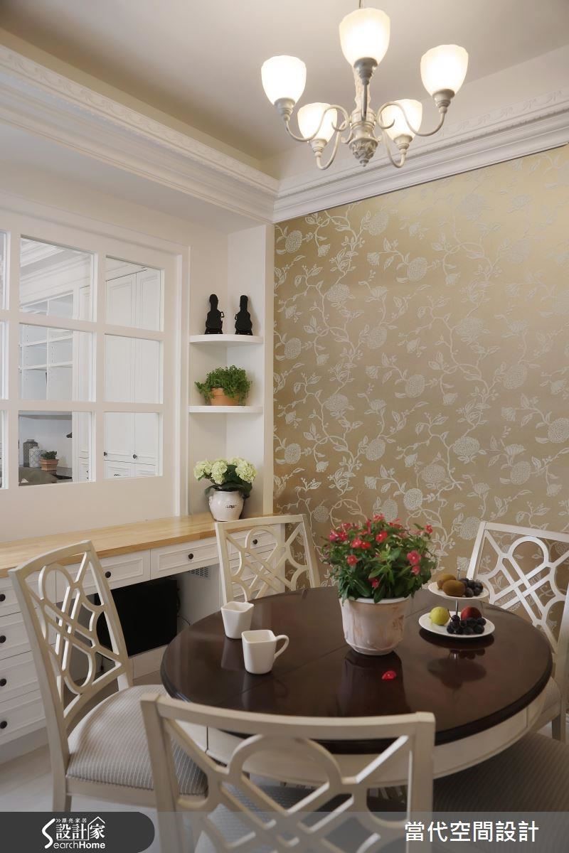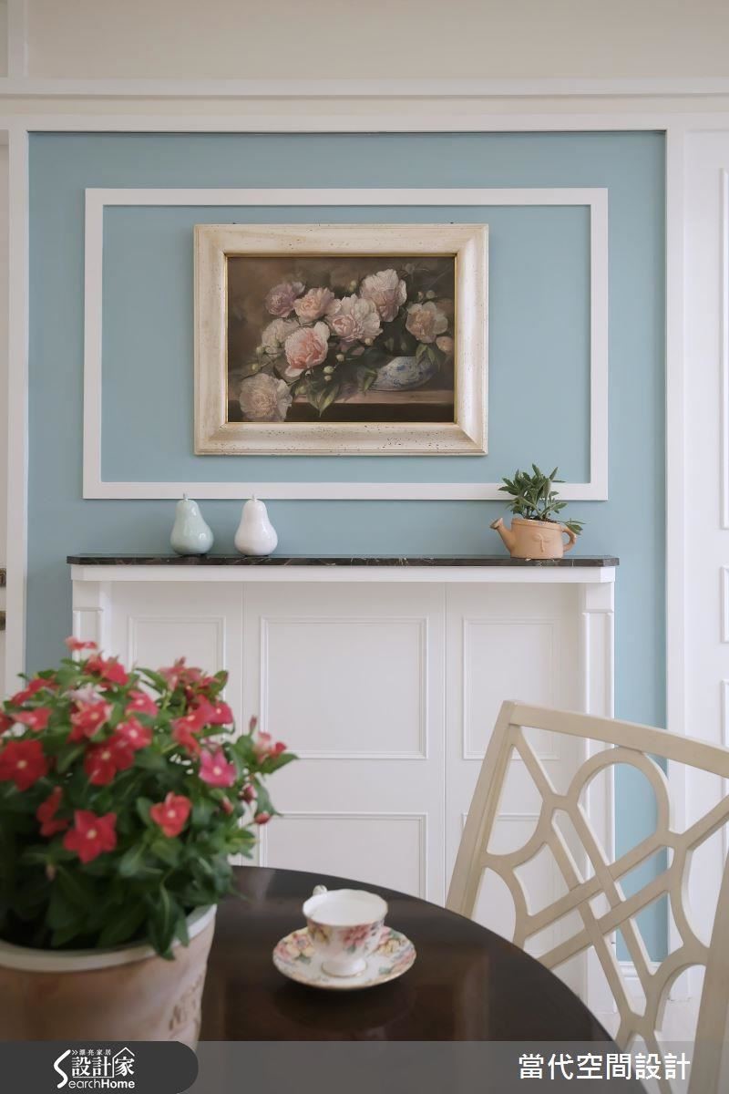 屋主本身喜歡旅遊,也因為品味極佳,總有許多收藏品。設計師不僅在客廳的沙發背牆設計收納展示櫃,更在利用餐桌側邊的空間,訂製僅有 45 公分深的吊櫃與邊櫃檯面,讓美麗和雜物收放自如。