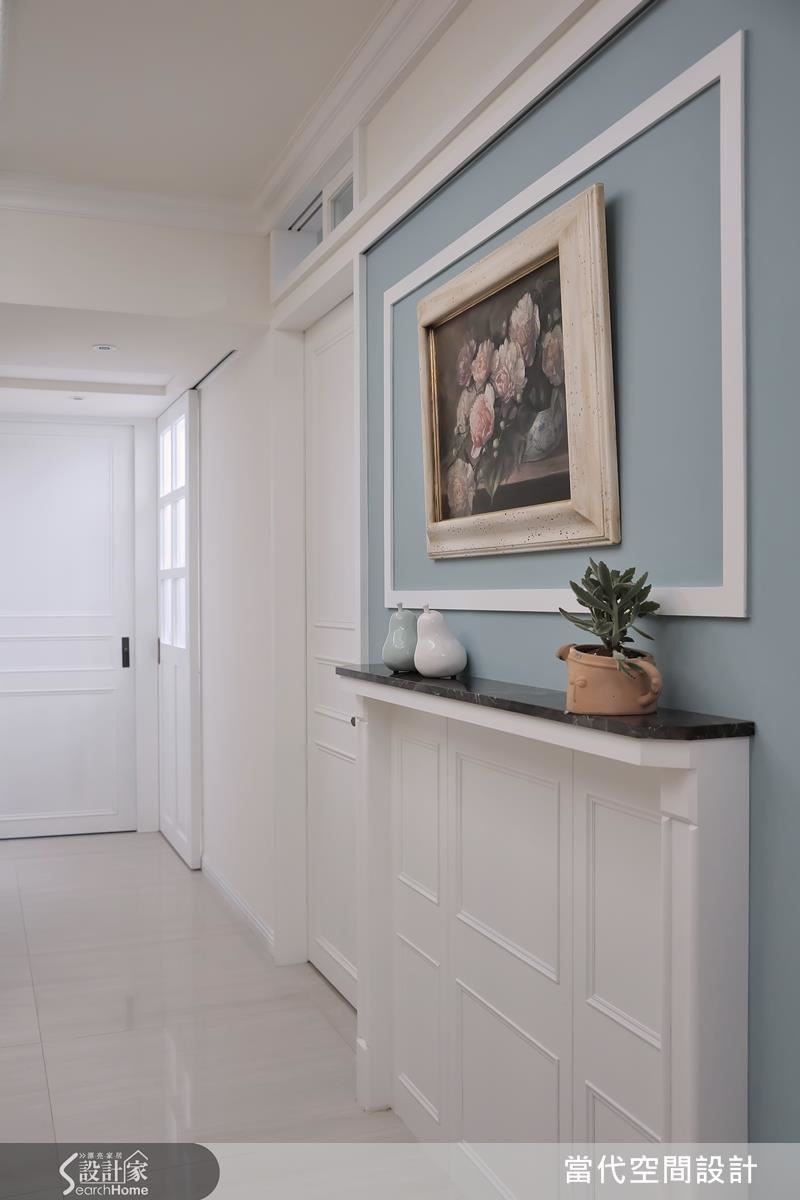 22 坪的空間內,設計師重新將格局微整型,以優雅的白色為基調,空間更顯寬敞,唯獨在走道上,塗抹上一片蔚藍,此為屋主女兒親自挑選的藍色,替純白空間注入了少女般的綺麗謬思。