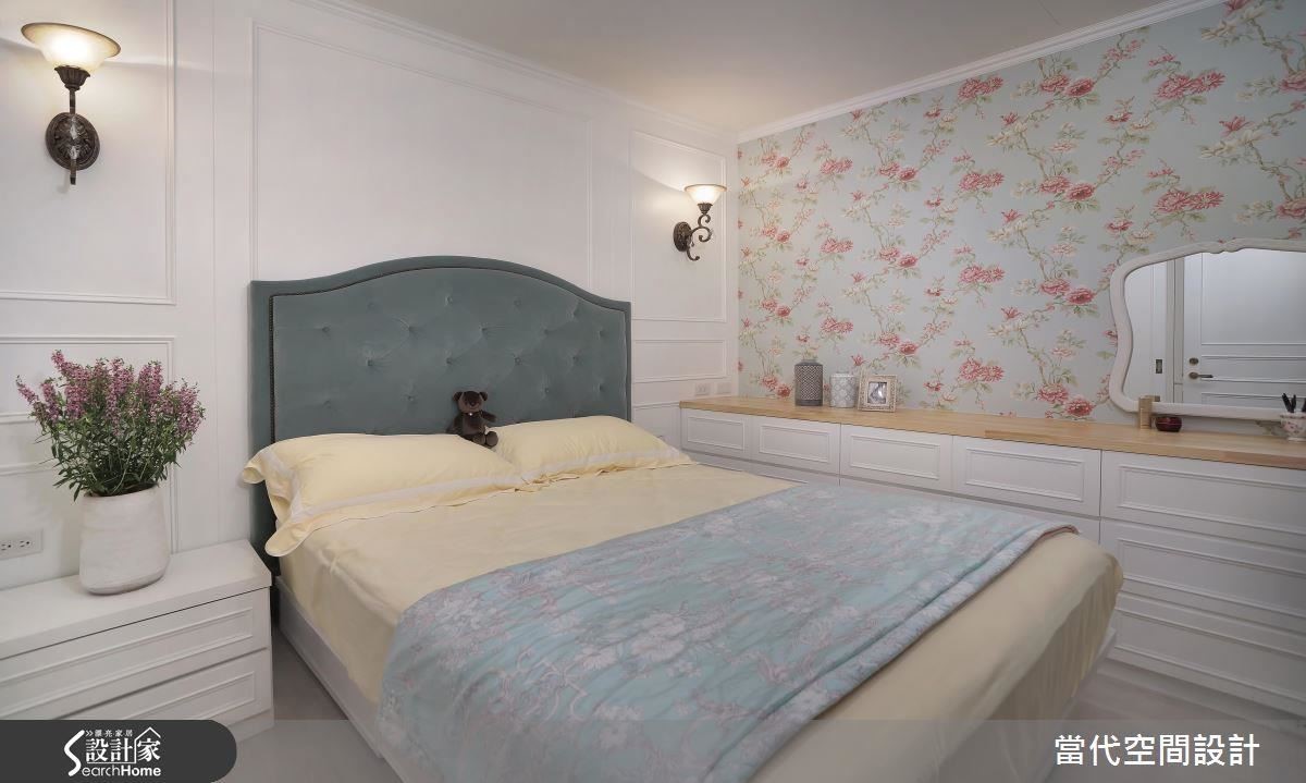 瞧瞧這間主臥室,不僅有著鄉村情懷的小花壁紙,瞬間渲染了恬淡閒適的氣氛,仔細觀察,私空間中的櫃體的線板語彙和造型把手,皆與公領域的選配相同,互為呼應,浪漫的設計就該從一而終,才美得徹底。