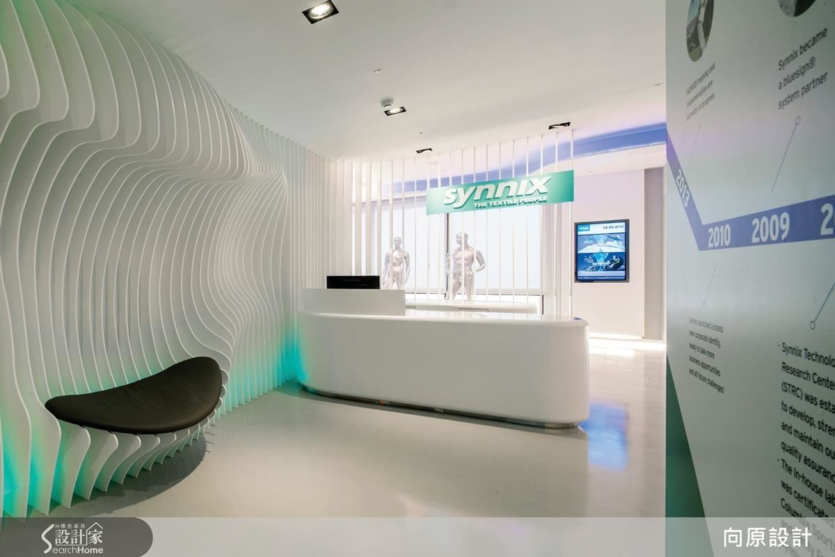 在無彩度、無雜質的白色基底中,融入漸變燈光與流轉線性,突破了制式的辦公室樣貌,貼切傳達企業主旨,演繹商品「布料」的優雅形象。