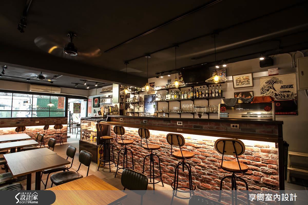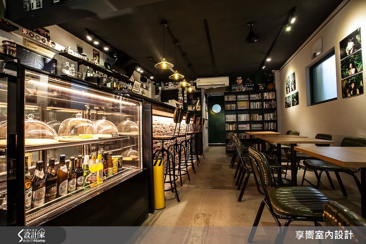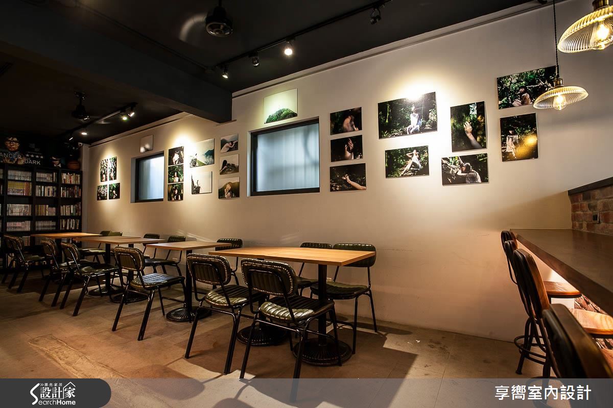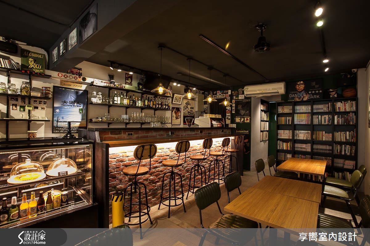 從門口進入,深邃的色彩有效提升空間的視覺高度,挹注鐵件、玻璃吊燈等元素,營造簡約復古的環境氛圍。格局配置上,重視整體動線的順暢,小巧的室內空間有序地劃分領域,在窗邊及料理區保留吧檯座位,並貼心預留電器插座位置,下方加入照明設計,利用光影凸顯磚體的層次。而寬敞開放的空間感,無形之間也連繫起人與人的互動,讓客人在品嘗咖啡之餘,能夠相互談話、交流,若是與朋友一起到訪,也具備適合多人聚會的座位區,地下室則藉由梯間引光,讓上下空間保有光度的舒適流通。