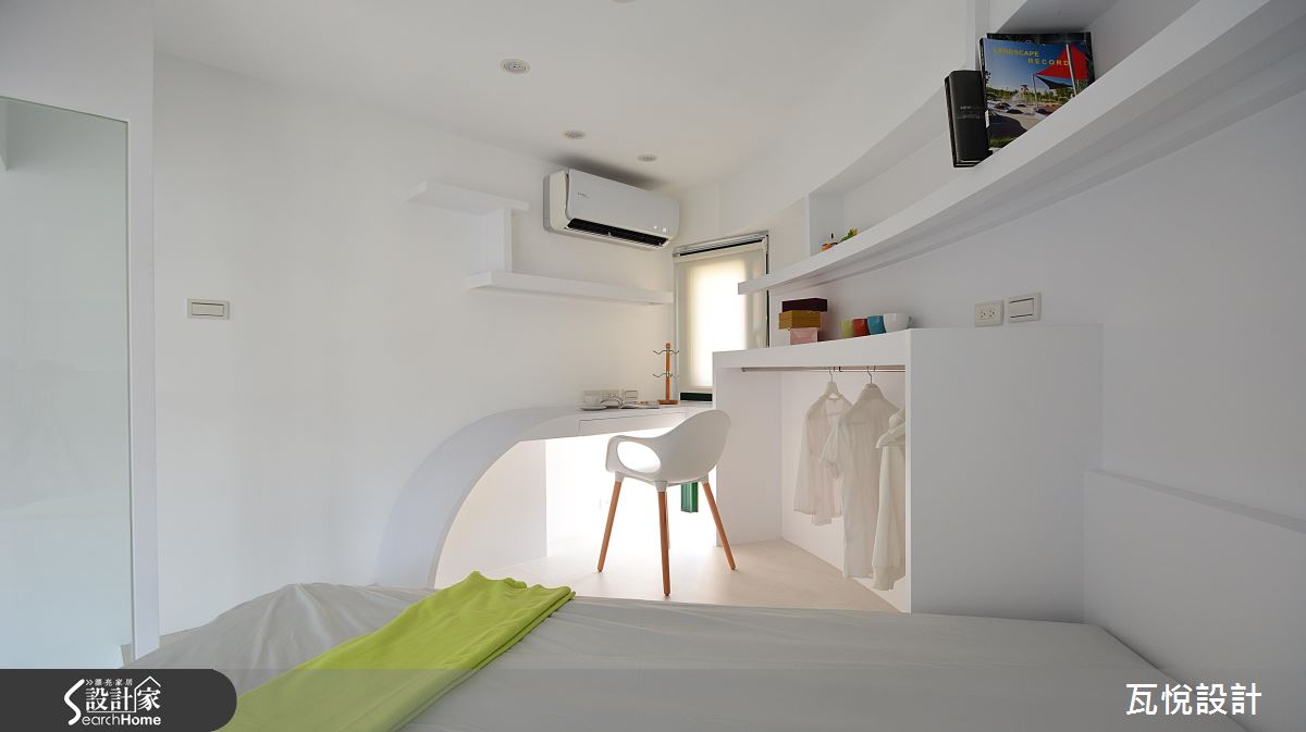 大面積玻璃引進大量光源,女兒房宛如一間透明娃娃屋,利用圓弧線條結合收納設計,讓房間充滿設計旅店氣息。