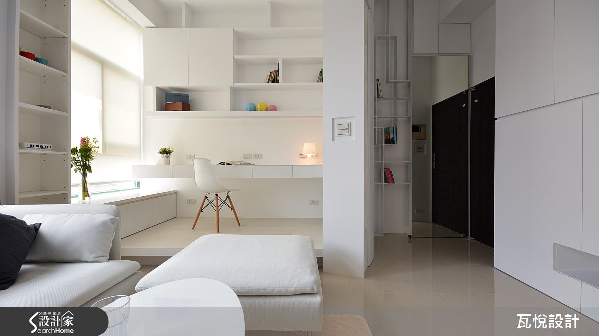 屋主為一家 3 口購置 16.5 坪的毛胚屋,如何在小空間內創造大量收納機能,同時維持開闊動線?設計師大量運用「複合式設計」,同時納入屋主喜愛的純白色調與夢想的書房,讓居家環境擁有超展開動線!