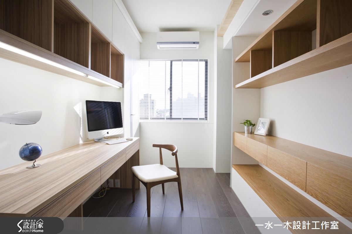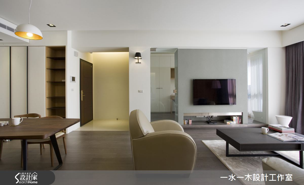 當空間擁有良好的採光,生活也會變得更加舒適,具有充裕日光條件的居所,設計師藉由玻璃介質,讓光度在領域隔間界線之間自由流通互動,也能保有客廳、餐廳和臥室起居的獨立性,並搭配爽朗木質、與樸實的灰質色彩,展現色彩與材質觸理的多元層次。客廳背牆蔓延一片溫質木色調,並延續至餐廳處,間或加入展示區塊,既可呈現出俐落的跳色效果,也具有收納功能性。電視牆後方設置為書房空間,擁有充足的收納機能,引渡窗景與客廳處的採光,帶來清新舒適的閱讀氛圍。寢臥同樣延續簡約調性,以溫雅色調為基底,形構放鬆紓壓的睡眠環境。
