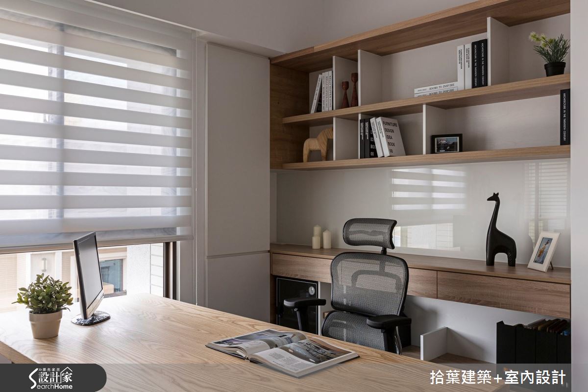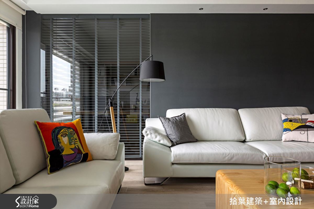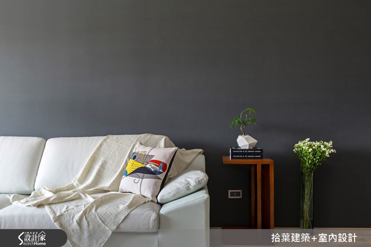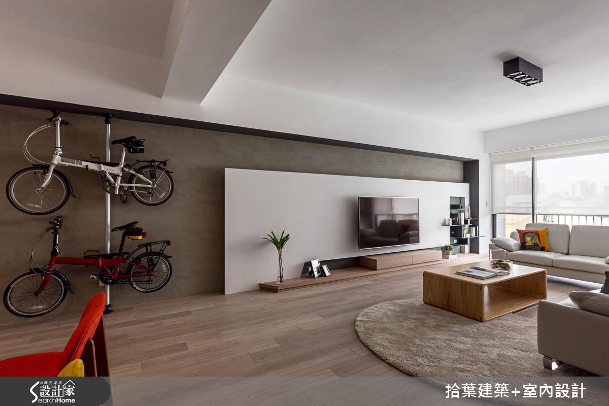 大面開窗,並擁有好採光的公共空間,以白色做為基底色調,再利用邊框線條修飾,勾勒出空間中的個性層次,灰質水泥粉光暈染出深淺的觸理質感,同時也成為單車收納的樸實色彩底襯。客廳與書房的隔牆繪上深邃的灰色調,迎來沉穩而知性的生活氛圍,在臨窗處留下局部的灰玻隔間,讓採光和窗景獲得良好的延伸,輕盈的介質也和沉謐色調達到完美的平衡點。另外,在本案中也有十分充足的收納設計,自玄關處的 L 型櫃體、客廳電視牆旁的造型展示,以及書房處收納規劃,並挹注簡約美感,充分展現實用機能的美學態度。