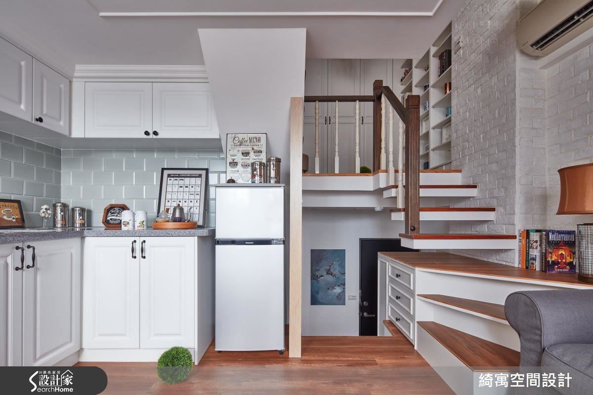 本案業主當初因為漏水、壁癌、格局不佳等問題,透過網路搜尋喜歡上綺寓設計靈活變化的特色,希望 11 坪的樓中樓能有一個機能完整的廚房及浴室。綺寓設計在經過觀察與溝通後,將「機能整合」、「動線安排」列為優先,再來以「視線導引」、「色彩特性」放大空間感,接著滿足業主收納的實際需求,最後以美式經典風格打造氛圍層次,相同空間在設計的魔法下帶來全新感受,讓小坪數不再拘謹窒礙,令人驚艷!