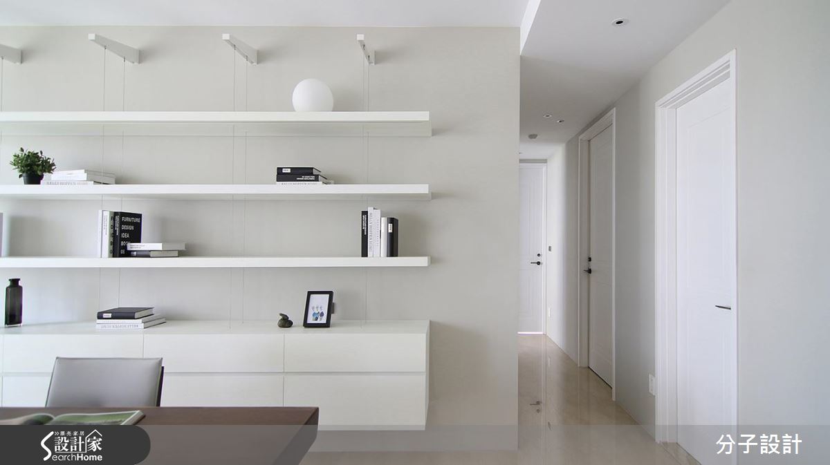 40 坪場域,設計師融入輕裝修手法,並結合開放式格局,在寬闊尺度中營造出舒適氛圍,而看似全白的空間,其實隱含著微妙的色調層次變化,顯現出設計者的細膩巧思,快跟著小編一起走進來看看吧!