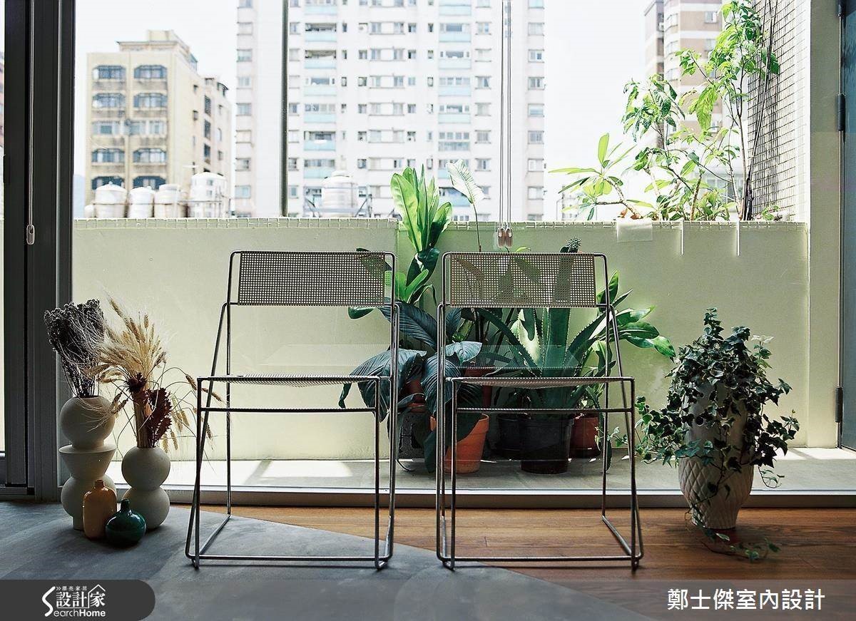 女主人十分喜歡園藝,正好與以現代有機主義設計見長,善用線條流動、捕捉浮光掠影,帶給空間充滿律動生命力的鄭設計師不謀而合。於是,前陽台保留給屋主拈花惹草,原是帶有風水意涵設置的中空板,引導了風的方向,更意外的營造出光影變化的有趣動感。