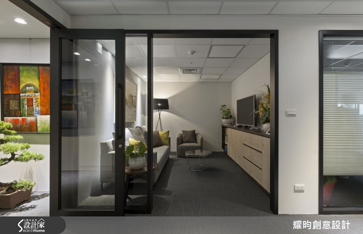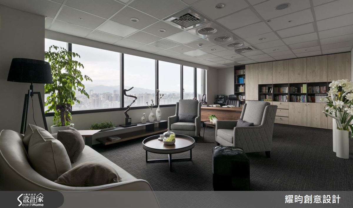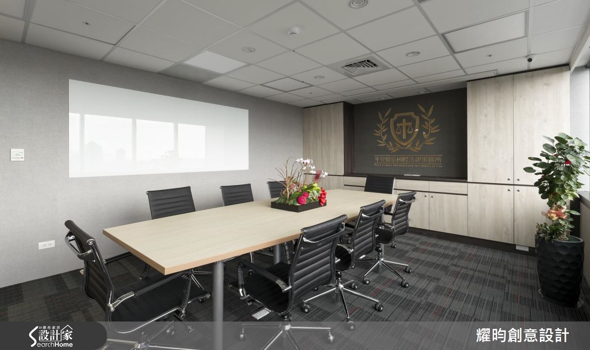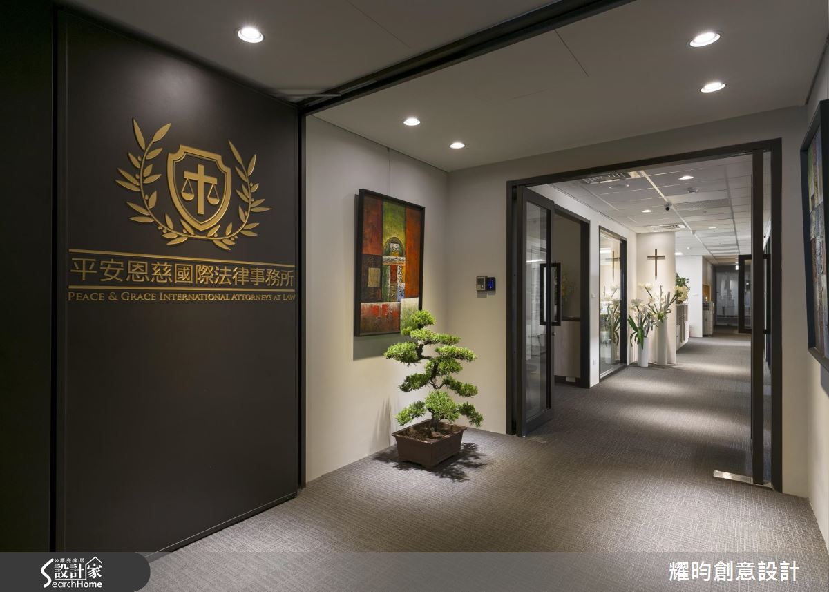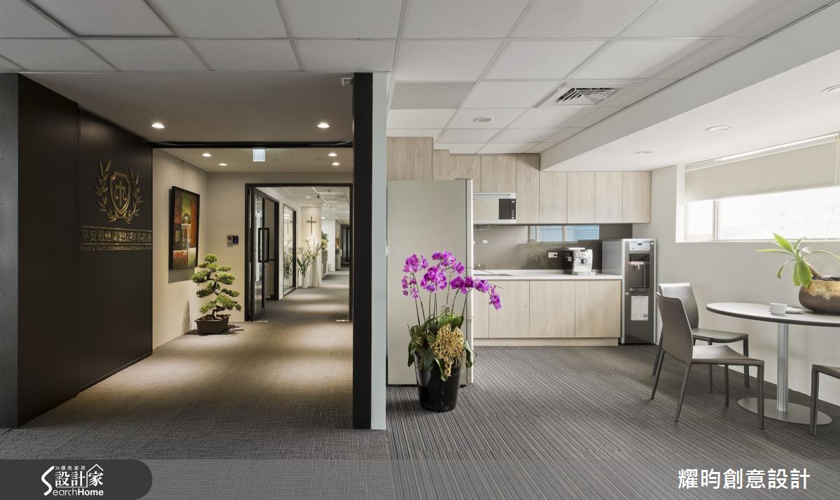 將 LOGO 融入桂冠與天秤符號,象徵著法律與宗教的結合,佐以植栽與掛畫,打造藝術性感十足的迎賓玄關。設計團隊透過動線安排,將設備完善的茶水間獨立於辦公室,給予員工與客人寬裕的使用空間。沿廊道將多功能休閒室、開放辦公室、大小型會議室與獨立辦公室依序安排在走道兩側,讓高樓層的採光優勢發回得淋漓盡致,每一個空間皆享有充沛的日光。最大的獨立主辦公室結合了會議、休憩與辦公功能,利用大地色沙發與色調輕淺、帶有自然紋理的櫃體抹除辦公室冰冷呆板的氣息。