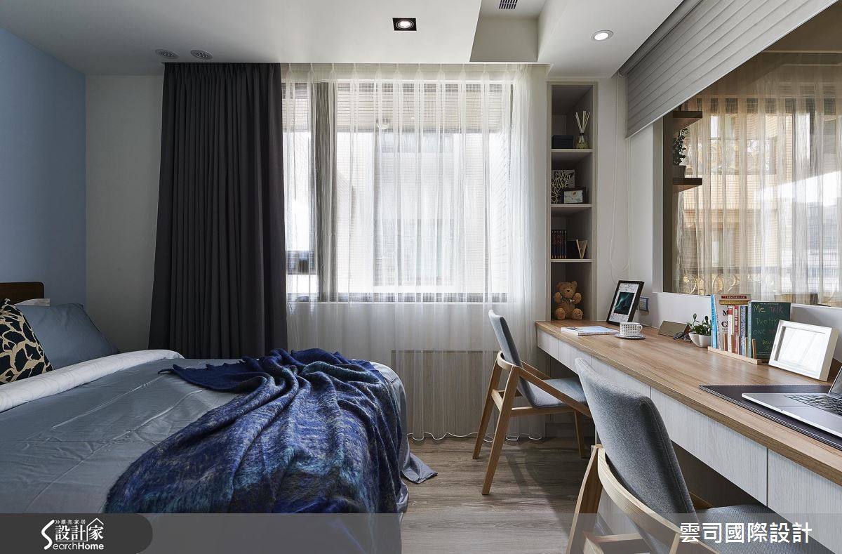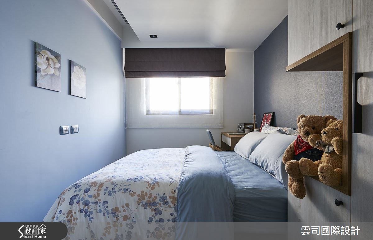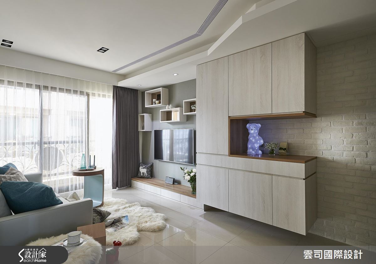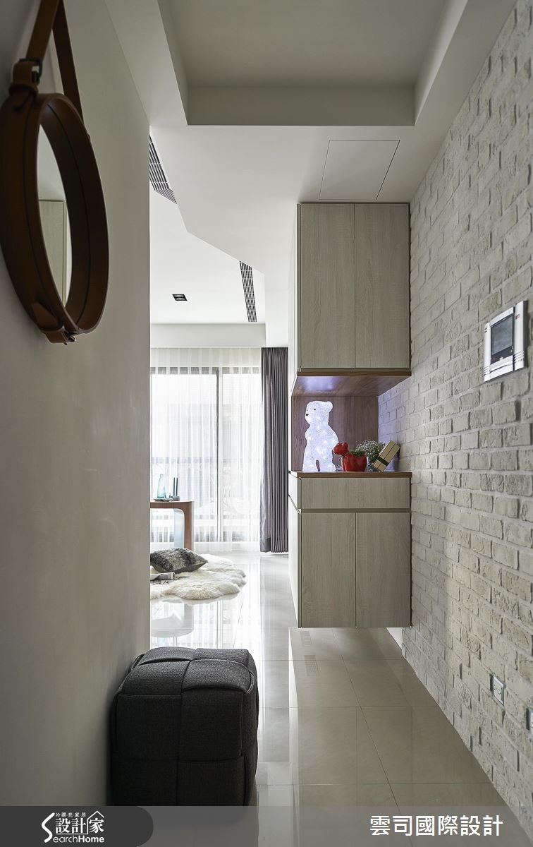 走進居宅,設計師於玄關立面鋪陳淺色文化石,一路延伸至客廳,中段配置展示櫃體界定領域段落,並挹注收納機能,藉由懸空設計帶出輕盈的量體表情;廳區整體給予明亮的色彩基底,於電視主牆揮灑優雅的灰綠色調,搭襯木皮妝點與日光進駐,勾勒宜人溫度,沙發牆則融入玻璃材質,使公私領域視線、光線可相互連通,衍生空間放大感;主臥內則整併書房機能,於牆角或窗檯下植入收納空間,充分利用每一吋坪效,並在床頭飾以溫柔的淺藍,讓場域瀰漫清爽氣氛;小孩房內延續清新的淺藍色調,使衣櫃作出局部透空,形成展示空間,且加入可愛的軟件家飾點綴,給孩子充滿想像力的童趣時光!