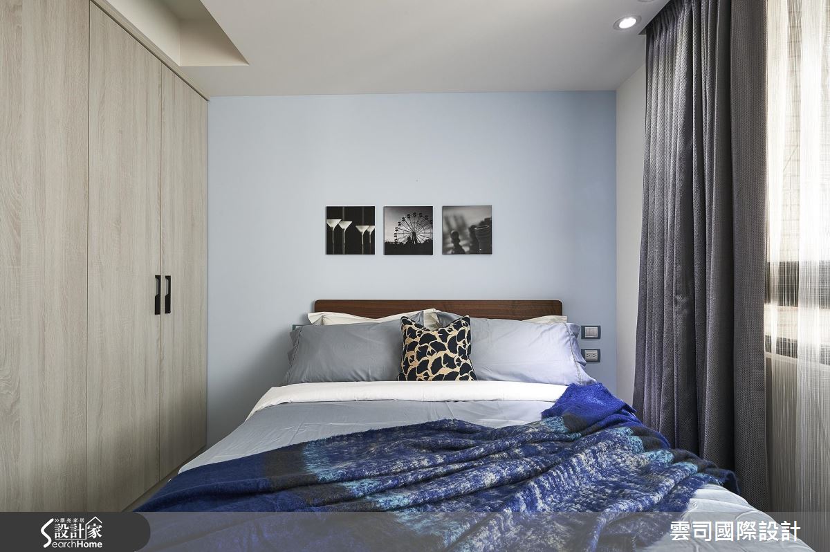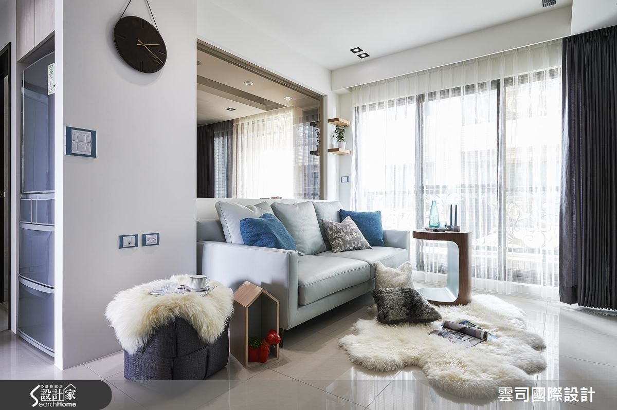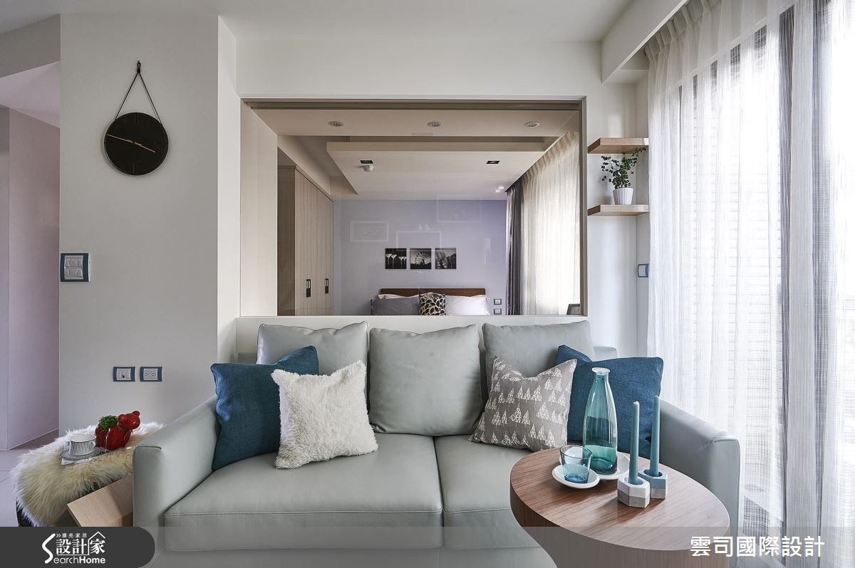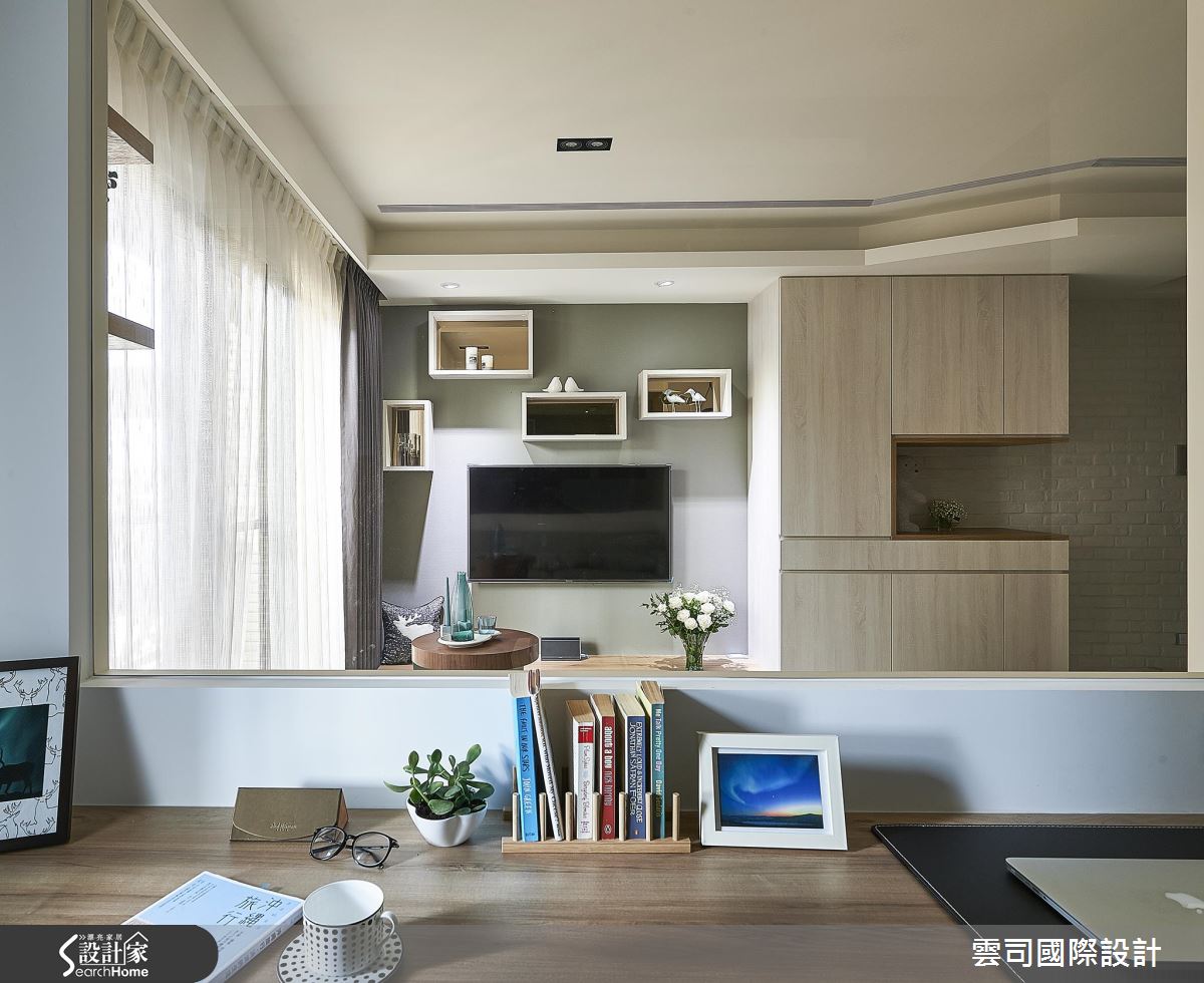 公領域藉著通透的隔間規劃,型塑主臥床頭、電視牆這兩面美好端景,讓人無論身處客廳或臥房,皆能欣賞到彼端景致,成功拓寬小宅有限的視野範圍!