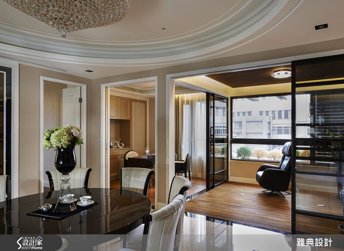 銀髮夫妻請設計師從毛胚屋開始,在 110 坪的大宅裡注入富有人文質感與精品飯店的時尚風格,放大客、餐廳尺度並增設多功能和室,完美勾勒出兩人對於退休生活的想望。