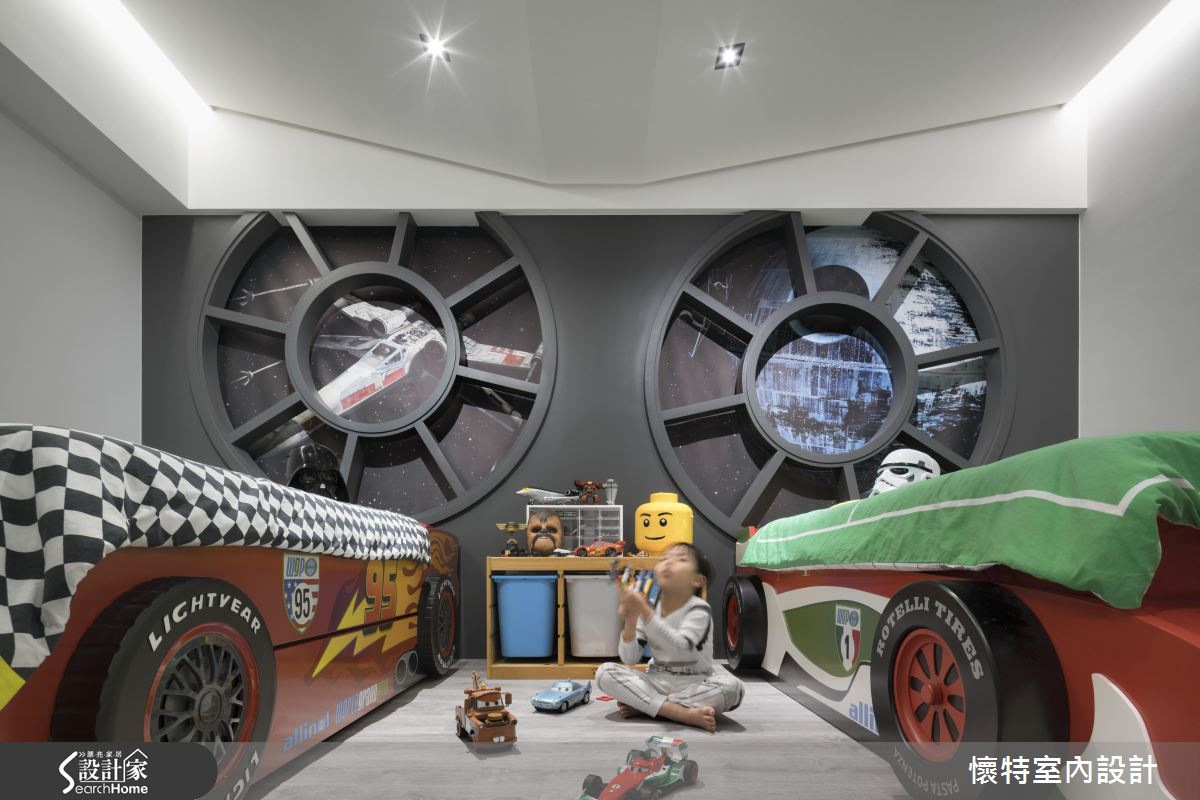 至於小孩房的設計,那絕對是經典中的經典!設計師將宇宙戰艦搬到真實生活中,打造出反抗軍的千年鷹號,不但將衣櫃門片改為太空艙門造型,甚至還有可以窺視外太空景象的觀景窗,彷彿漂浮於宇宙中!既前衛又現代的設計手法,肯定讓每個星戰迷都直呼:「可惡!好想要啊!」