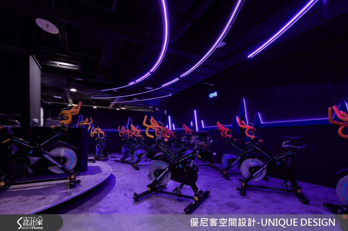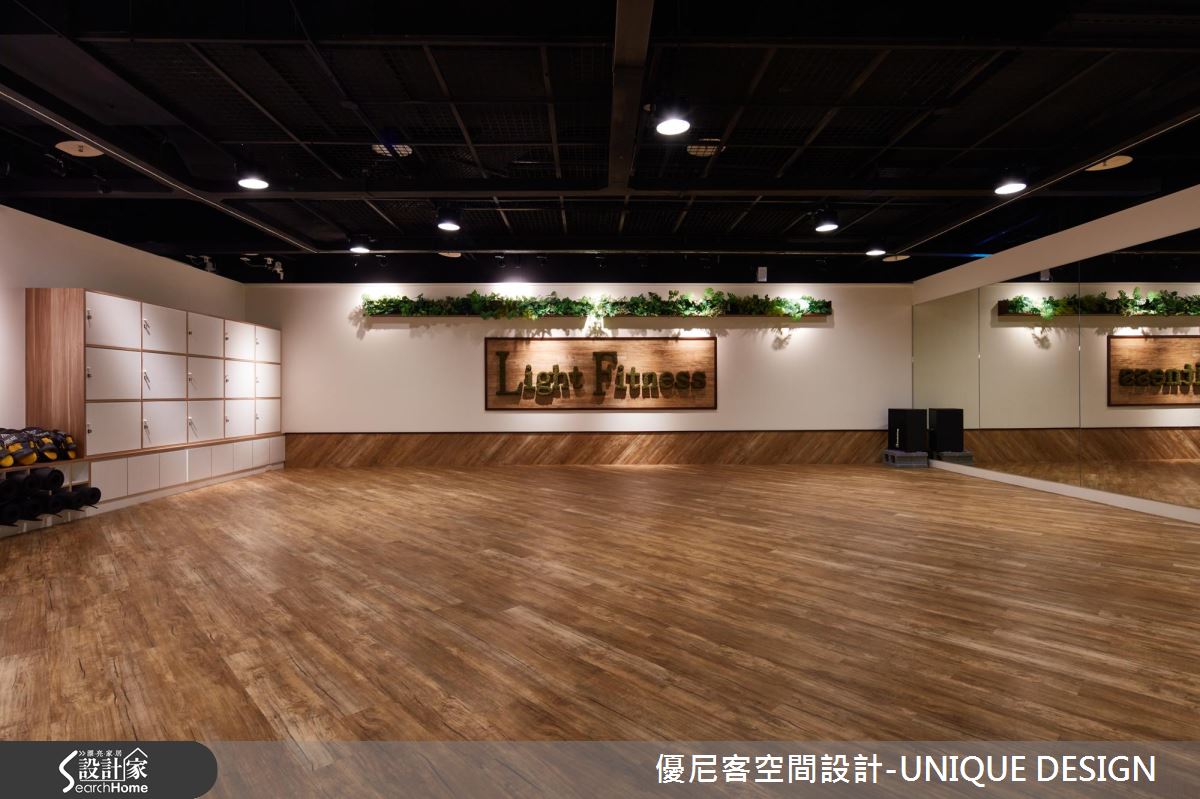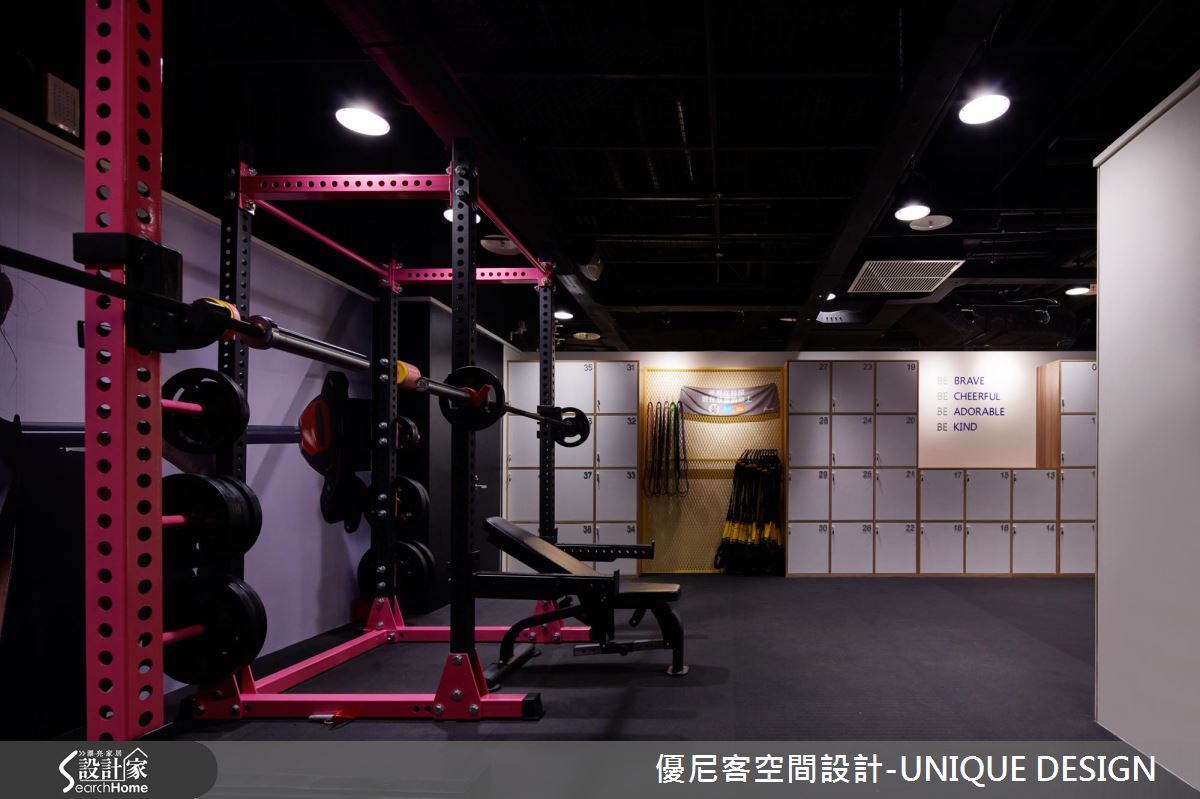 有鑑於天花管線過多,於是設計師閃躲多支管線,並善用多種燈具搭配,配合鐵件搭構,型塑個性感十足的空間表情,不管是接待區、櫃檯後的架高休息區或有氧瑜伽教室等,都帶入輕鬆明亮的愉悅感受,藉由溫潤的木紋地板大面鋪陳,迎來舒適的使用觀感,且為了強調女性運動者強而有力、不失溫柔的個性,在牆面透過便利貼大膽拼湊創意圖象,將形象標語及女超人意象呈現於此;飛輪教室則規劃給教練獨立的舞臺,並導入獨特閃爍燈光效果,可搭配音樂節奏做出變幻,引領強烈的聲光饗宴;多功能訓練及重量訓練兩大區塊,為了避免學員們造成運動傷害,使用運動地墊鋪設、達到吸音減震效果;小朋友的遊戲勞作室則注入繽紛畫面,燈具配置上跳脫了以往的設計思維,象徵著孩童們不受侷限的想像力!