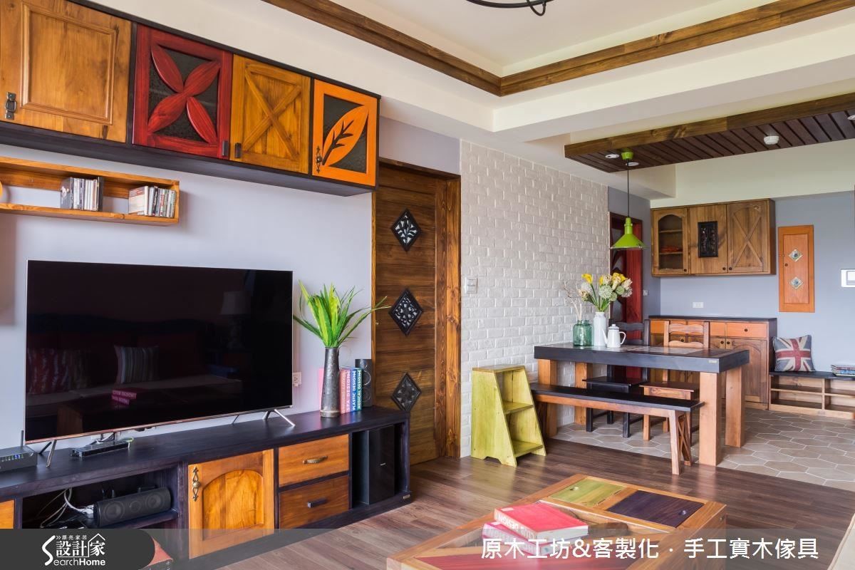 2.貼心趣味收納機能:本案室內空間不大,李佳鈺為滿足屋主一家四口跨齡的收納需求,每個環節都按照尺寸需求,例如:電視牆的規格,音響設備與電腦主機的相對位置、衣櫃中棉被與衣服的收納習慣等,斤斤計較算計,絲毫不浪費空間。收納種類有開放、上掀、對開、拖拉等,滿足各種收納使用機能,另外在各門片上,巧用色彩與圖騰,使整體跳脫全實木的保守,讓空間多了趣味與亮點,兼具美觀與機能,又能保有屋主的個性特色。