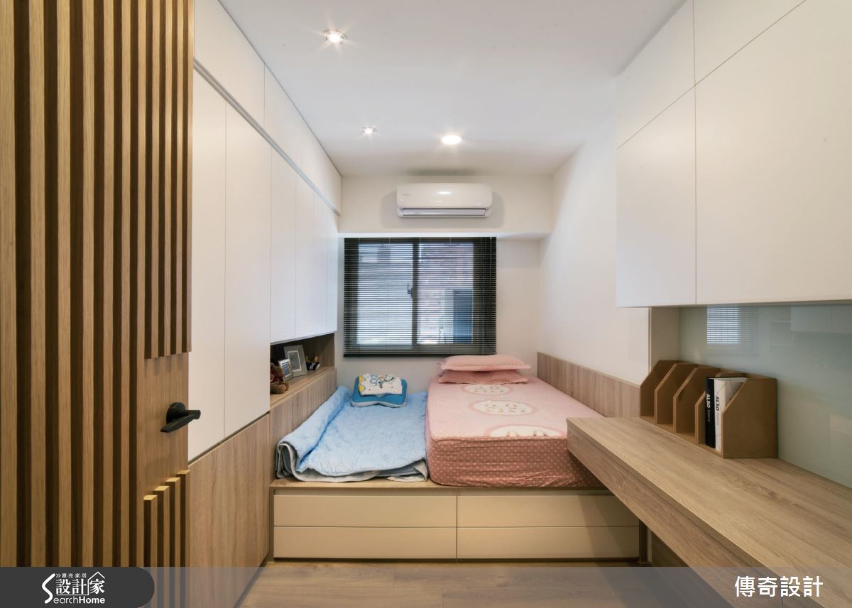 小孩房內整合所有機能,藉著一體成型的設計、使量體顯得清爽不壓迫,挹注更多的可收納空間!