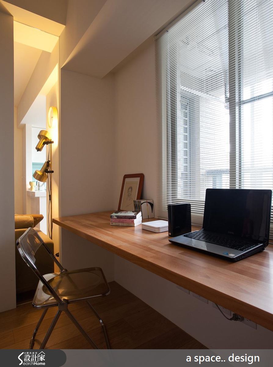 書房坐擁採光良好的整面開窗,搭配著隔間牆的局部透空,讓光線可自在流通,維持居家各角落的明亮感!