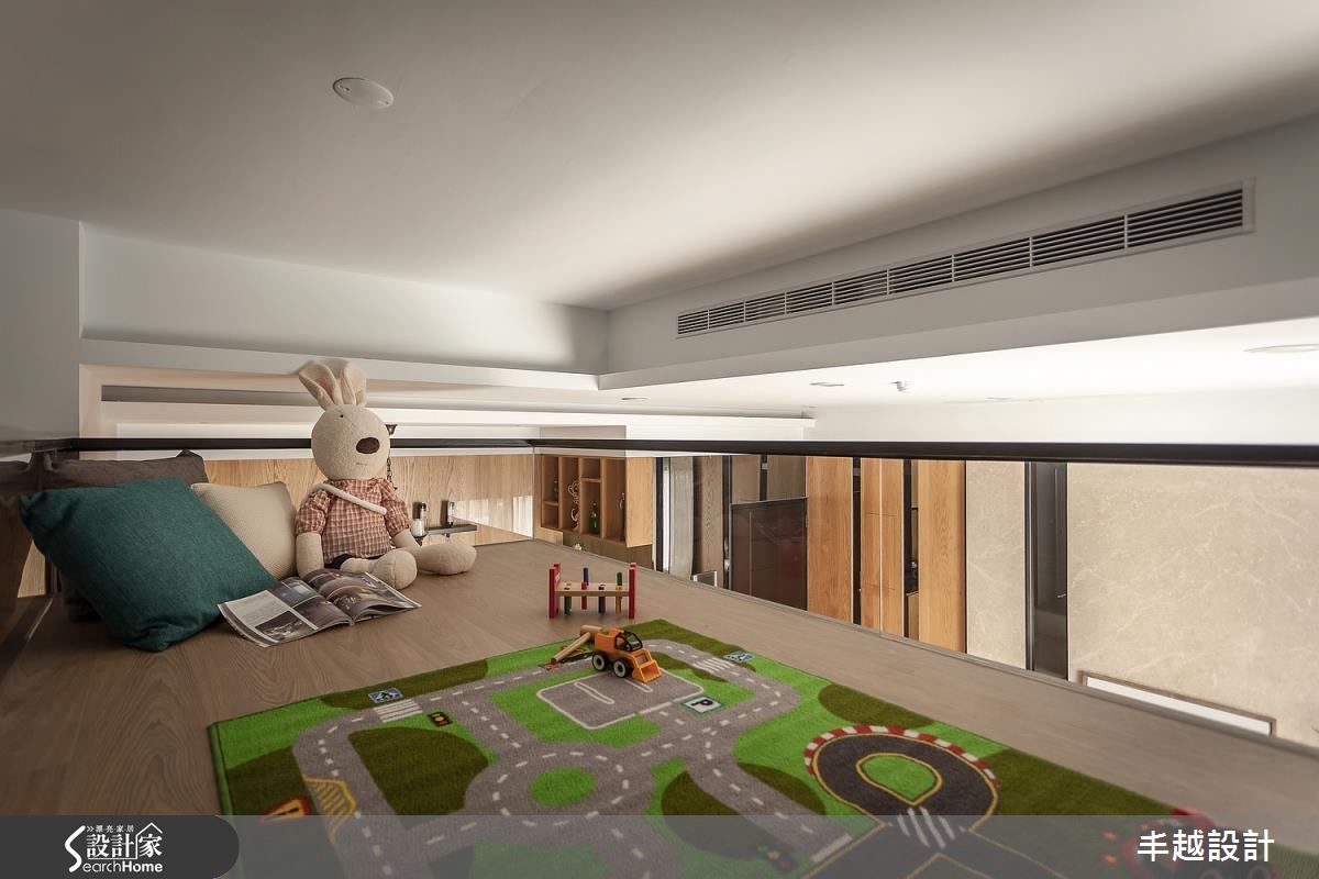 位在書房上方的夾層被規劃為遊戲區,鋪陳木地板保有溫潤氣氛,並作出透空隔間設計,兼具安全性與生活互動性,讓孩子可在此恣意玩耍,享有一方專屬天地!
