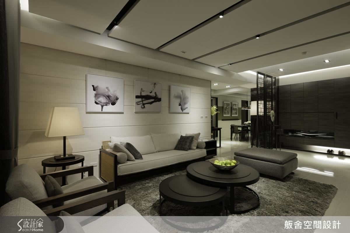 顏善松設計師以視線穿透的設計使空間感受寬闊舒適,解決屋主擔心居家坪數變小,空間變窄的隱憂。並以黑與白的強烈對比,與材質搭配的運用,呈現精緻質感,襯托出女屋主心中沉穩雋永的禪意。