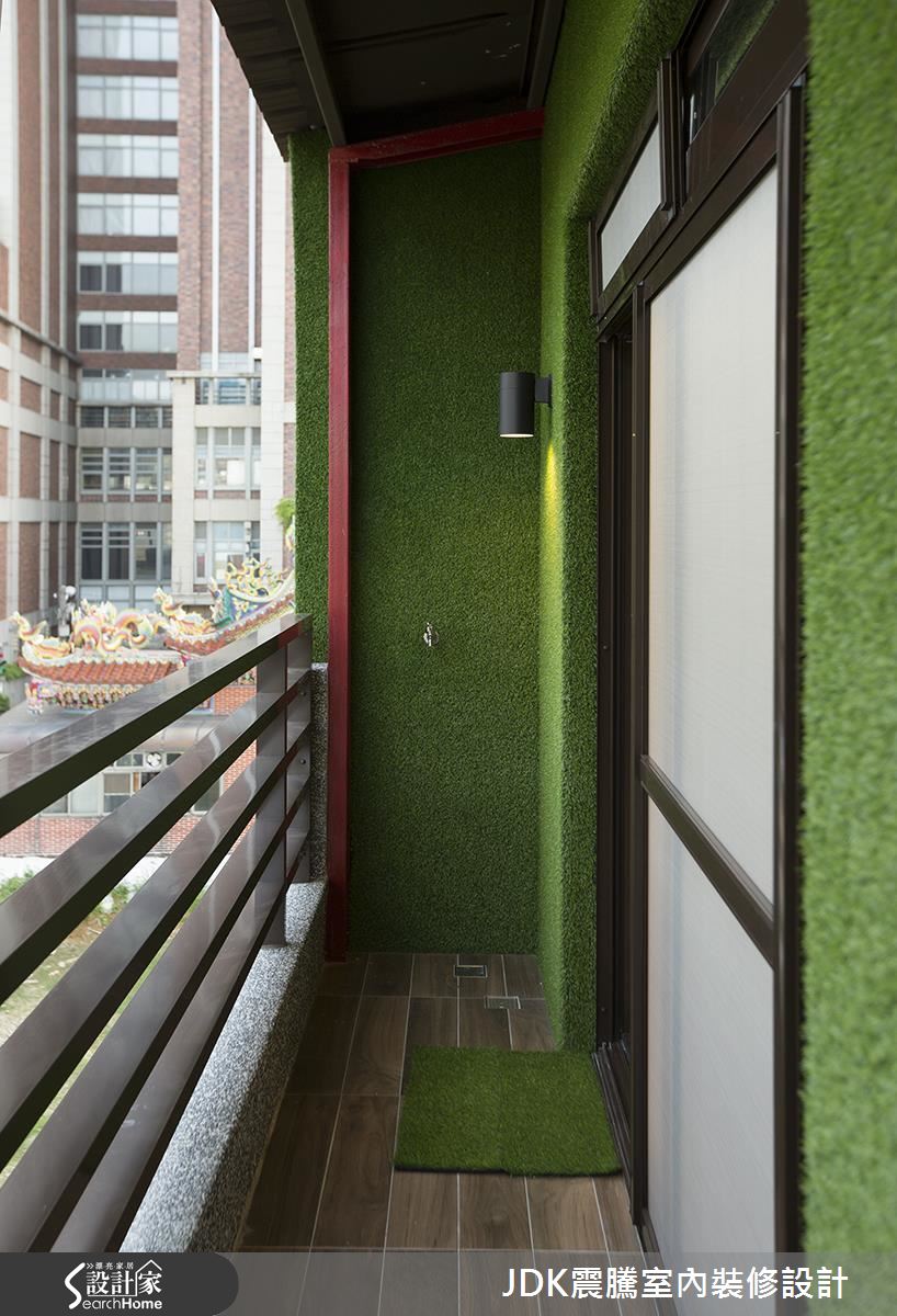 設計師為背包客規劃了專屬的小陽台,在壁面加入綠意,地坪鋪設木紋磚,兼具休閒與溫馨氣息。