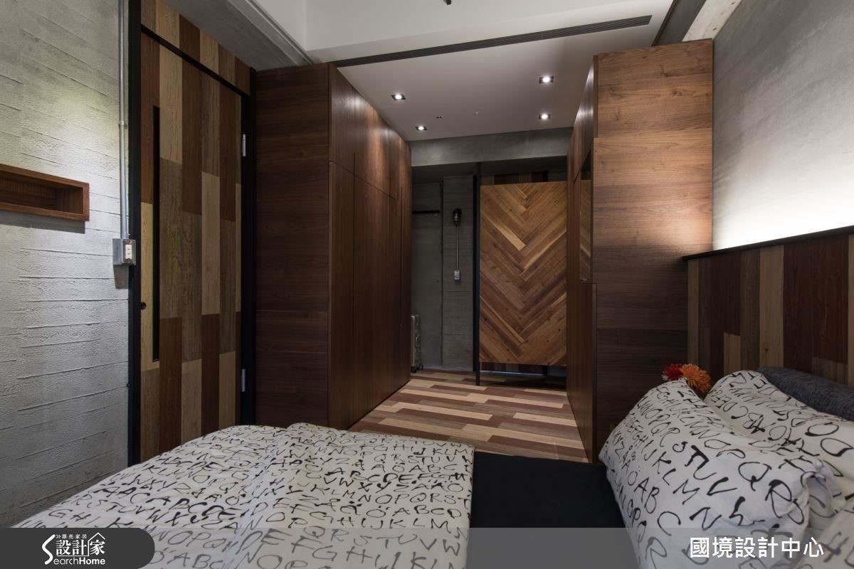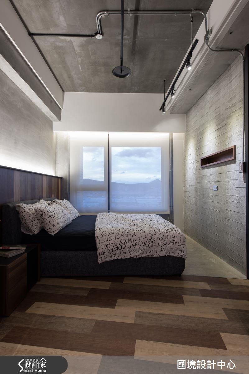 在工業風主臥注入大量暖調木色,成功降低過度個性化的氣息,同時平衡水泥粉光與鐵件管線的冷冽氛圍,設計師更加入大面積櫃體,確保居家的收納充足性。