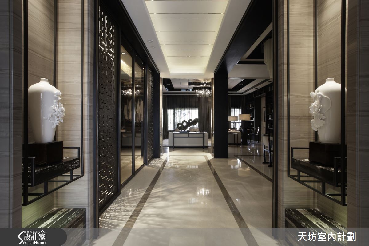 設計師藉著細膩精神、將東方美感結合現代實用性,實踐於整體空間中。格局融入開闊大器的視野,呈現軒宇大器之感,且延伸加大動線與開口面寬,營造恢弘不凡的氣勢,且將木作、金屬、石材等建材融會貫通,並融匯中式窗花與現代語彙,賦予濃郁的藝術神采,同時賦予乾淨俐落的量體線條,在精準的線性之中,兼具輕盈與沉穩,洋洋灑灑地描繪著充滿氣度的每一幅端景畫面!
